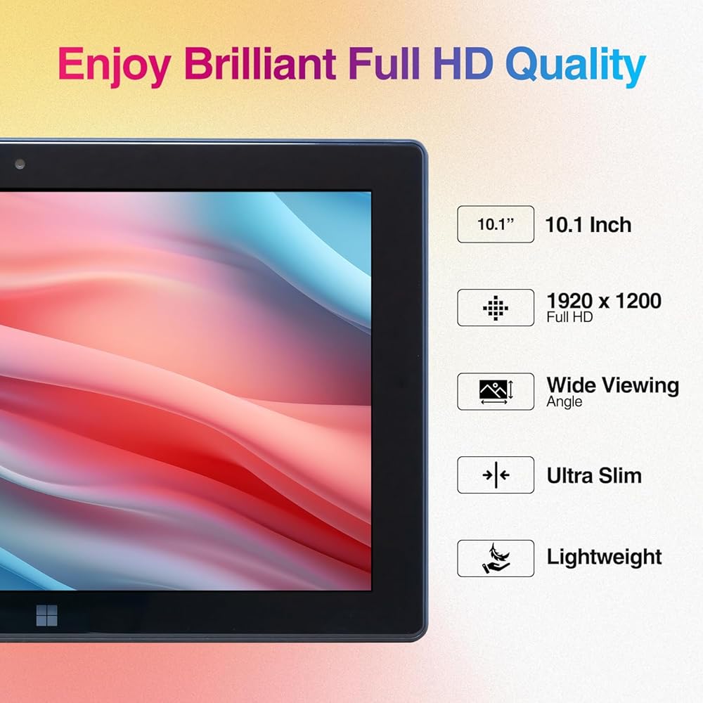 شاشة عرض رسومية مقاس 10 بوصات للعرض الأمثل: تعد الشاشة مقاس 10 بوصات الموجودة على هذا الكمبيوتر اللوحي الذي يعمل بنظام التشغيل Windows 11 من Fusion5 مثالية لمشاهدة البرامج التلفزيونية والأفلام واليوتيوب المفضلة لدينا وممارسة الألعاب!