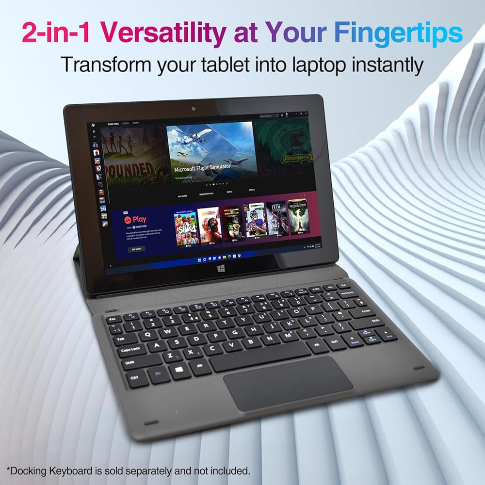 مساحة تخزين قوية وضخمة: وحدة معالجة مركزية Intel-core مُحدثة مع وحدة معالجة رسومات قوية - ذاكرة وصول عشوائي (RAM) سعة 4 جيجابايت، جهاز الكمبيوتر المحمول الجديد الذي يعمل بنظام Windows اللوحي جاهز للعمل والمرح واللعب.