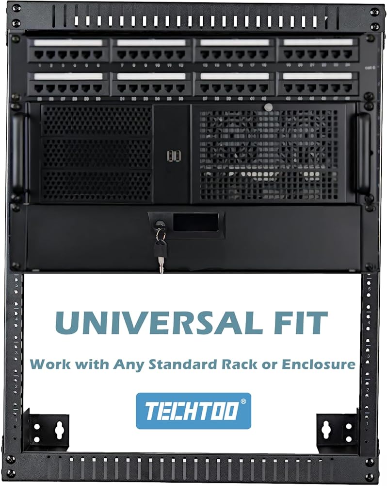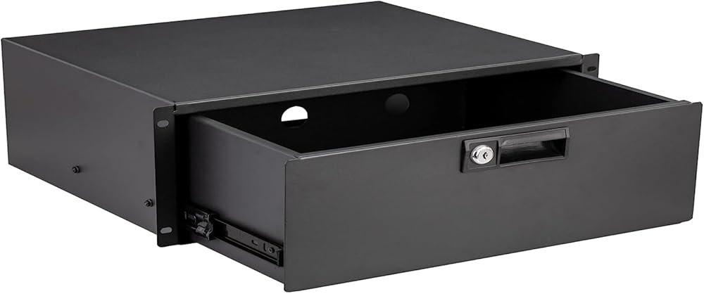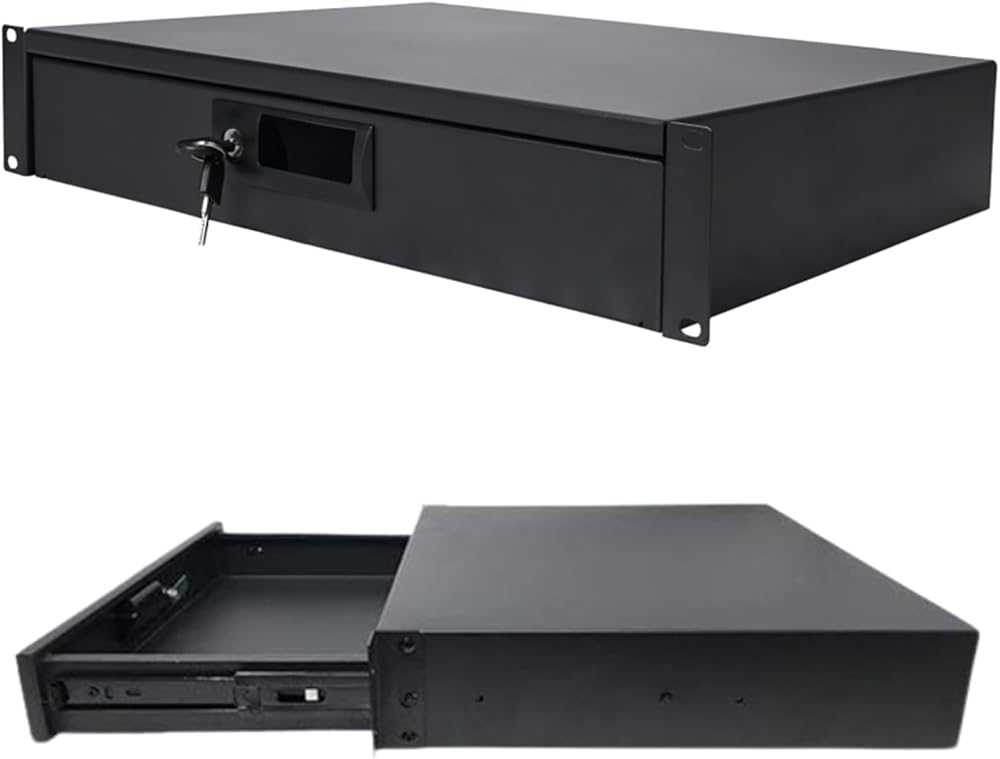 TECHTOO Rack Mount Drawers – Heavy-Duty Construction, Multifunction and Premium Quality to organize and secure your Rack Mount Equipment. This Rackworks rack mountable drawer is good for storing network device, cables, headphones, tools, microphones, as well as many other uses.