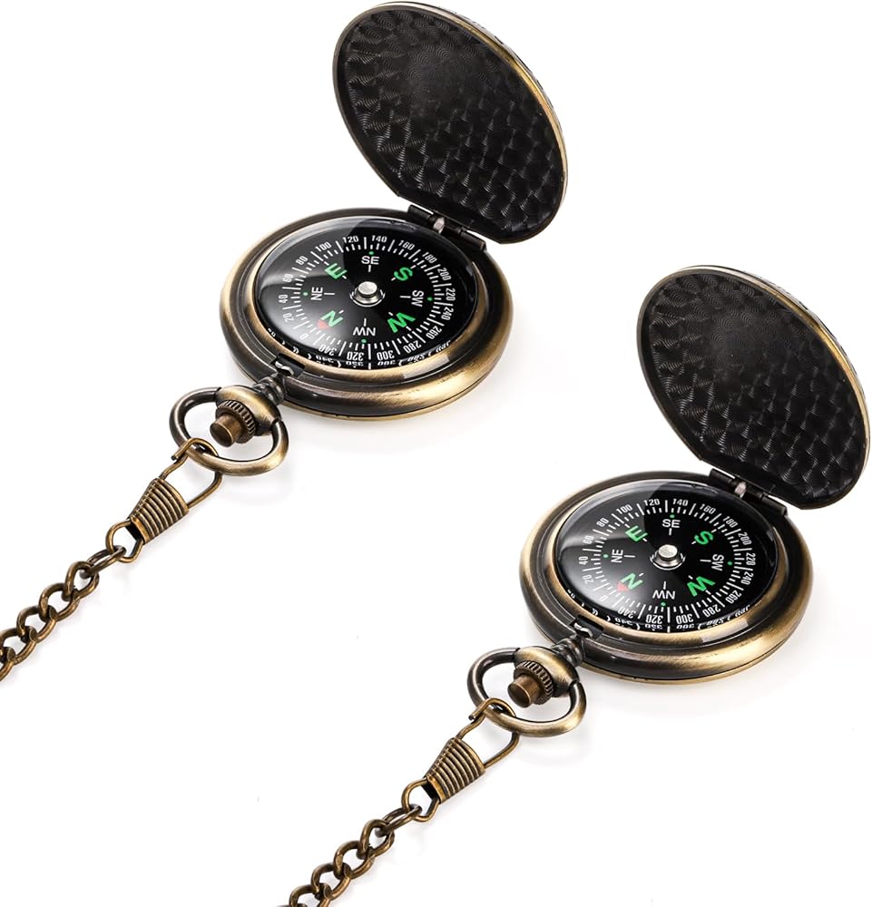 tebery 2 حزمة بوصلة جيب ذات لمسة نهائية عتيقة مع سلسلة مقاومة للماء محمولة عتيقة، بوصلة معدات البقاء على قيد الحياة للأطفال المشي لمسافات طويلة، والتخييم، والسيارات، وحقائب الظهر، والأنشطة الخارجية
