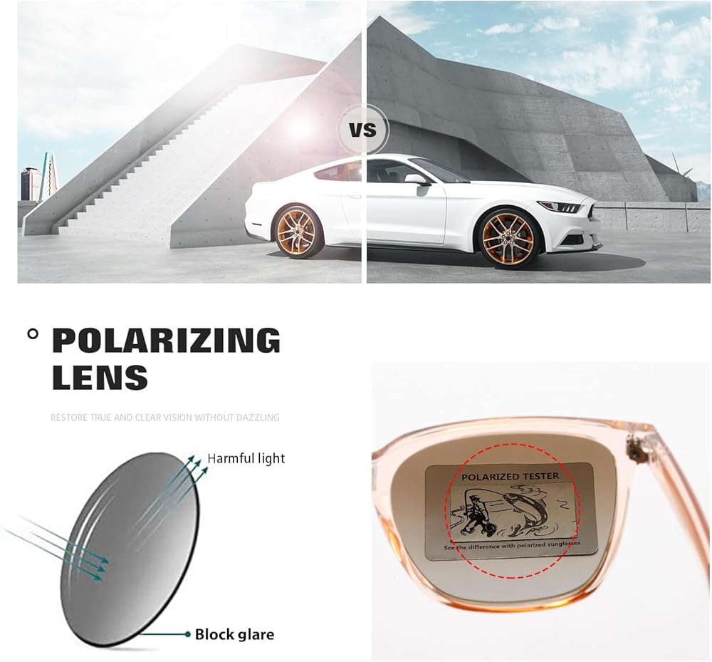 نظارات شمسية عالية الجودة - هذه النظارات الشمسية الأنيقة من TIANYESY مصنوعة من إطارات بلاستيكية عالية الجودة، وعدسات مستقطبة UV400، ومفصلات معدنية صلبة، وجميع التفاصيل تضمن لك الاستخدام لفترة طويلة. هذه النظارات الشمسية المربعة العتيقة مناسبة للنساء ومناسبة لأي مناخ وظروف جوية.