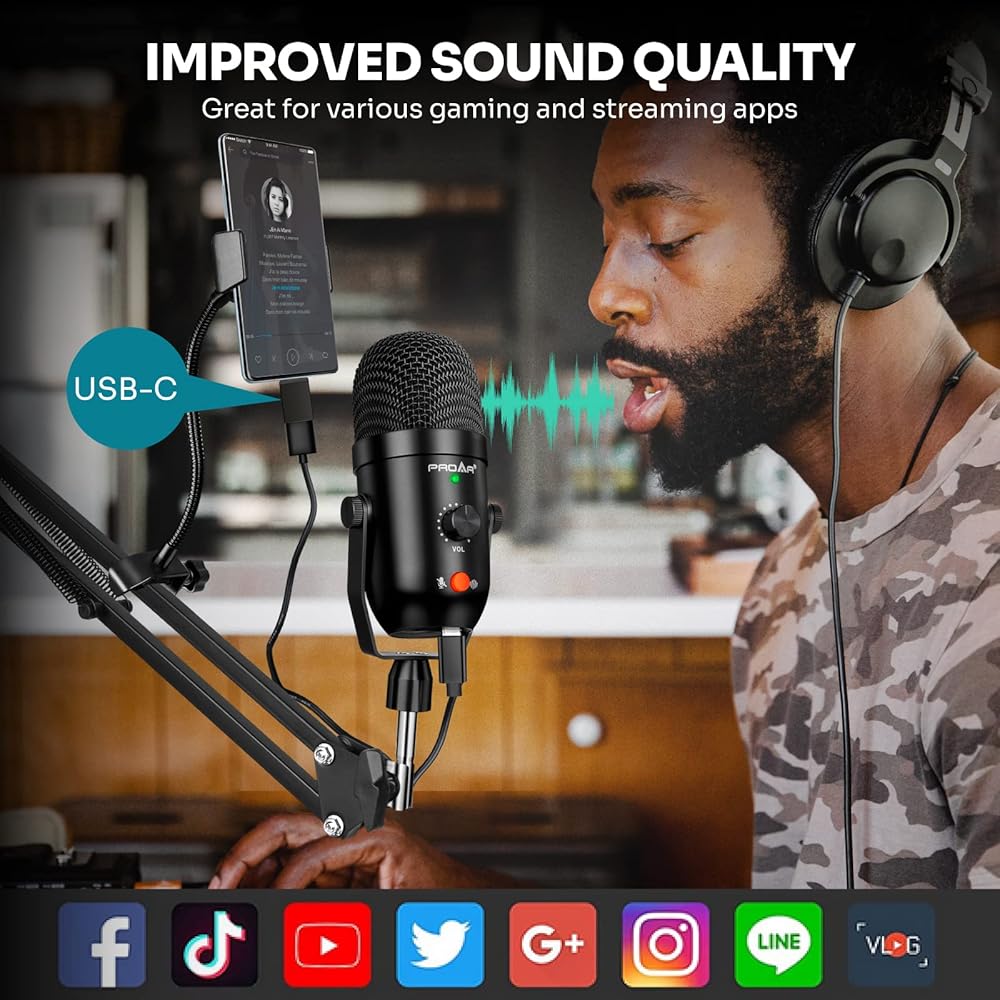 🎤【توافق واسع】لا توجد حاجة إلى برامج تشغيل أخرى. إنه ميكروفون تسجيل بودكاست مكثف للتوصيل والتشغيل يمكن أن يعمل على الفور على أجهزة الكمبيوتر المحمول Mac وPS4 وWindows PC. يتضمن ميكروفون الألعاب محولين، لذلك فهو متوافق أيضًا مع الهاتف/الوسادة والهواتف الذكية التي تعمل بنظام Android. مجموعة ميكروفون البث مثالية للبودكاست أو مدونات الفيديو أو التعليق الصوتي أو تسجيل الموسيقى أو البث على YouTube أو Twitch.