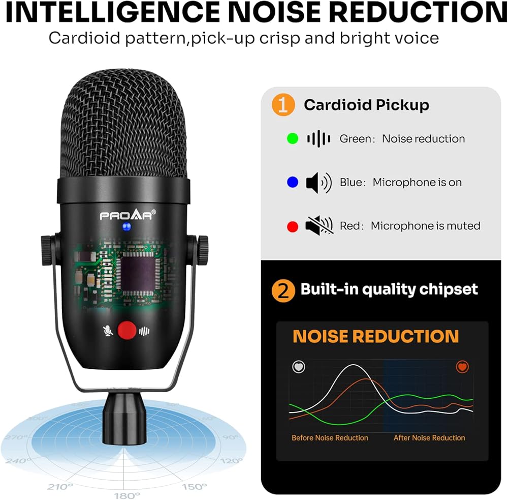 🎤[ميكروفون إلغاء الضوضاء] اضغط لفترة طويلة على زر كتم الصوت لمدة 3 ثوانٍ ويضيء باللون الأخضر للتبديل الذكي لتقليل الضوضاء. يمكن للميكروفون المكثف القلبي التقاط صوت نقي ودقيق، ويقلل بشكل فعال من تداخل الضوضاء في الخلفية، ويضمن إمكانية تسجيل تسجيلات أكثر مثالية. ميكروفونات الكمبيوتر رائعة للمشروع/الاستوديو المنزلي.