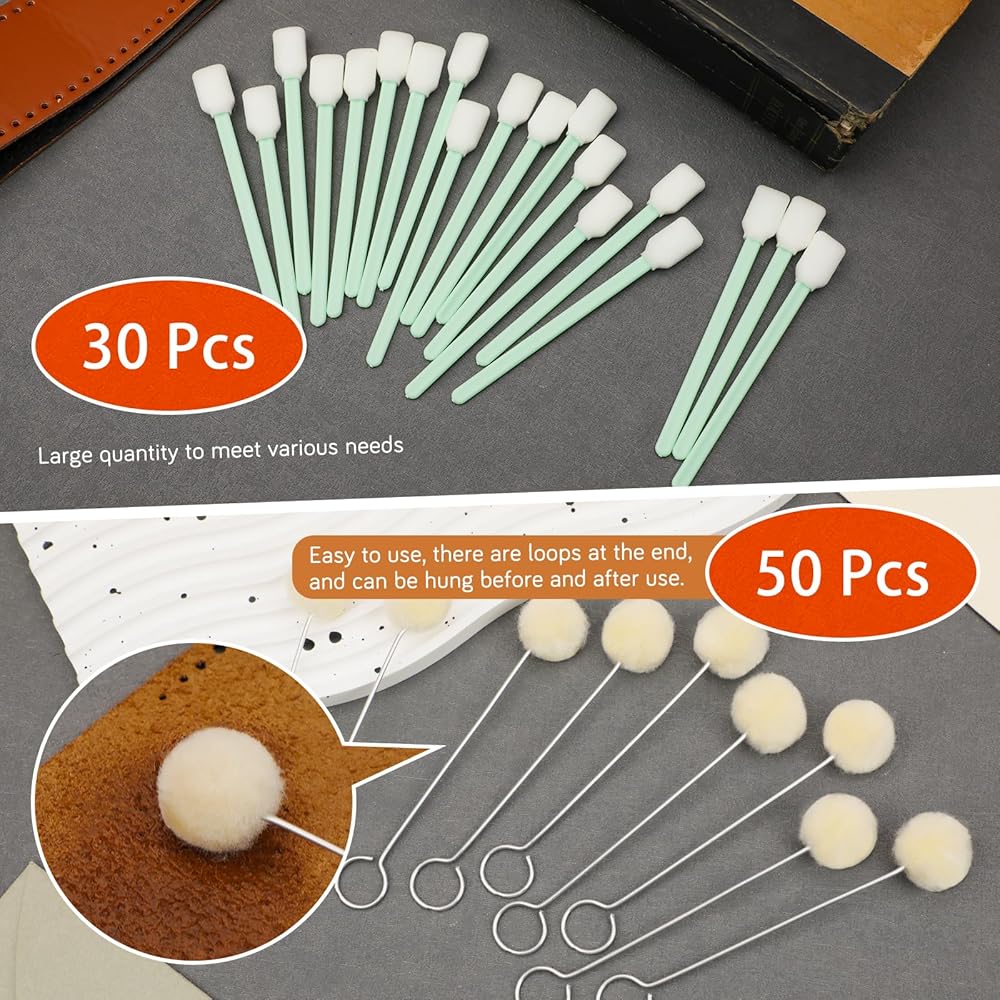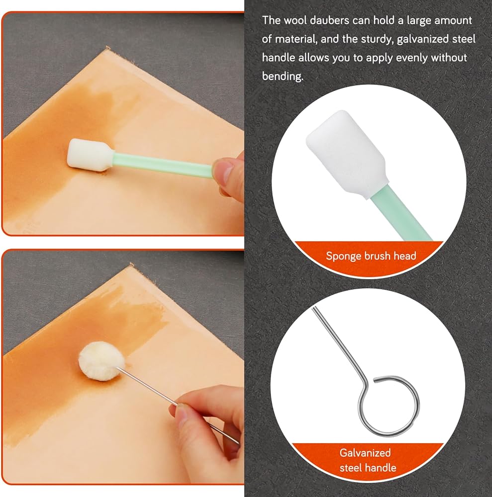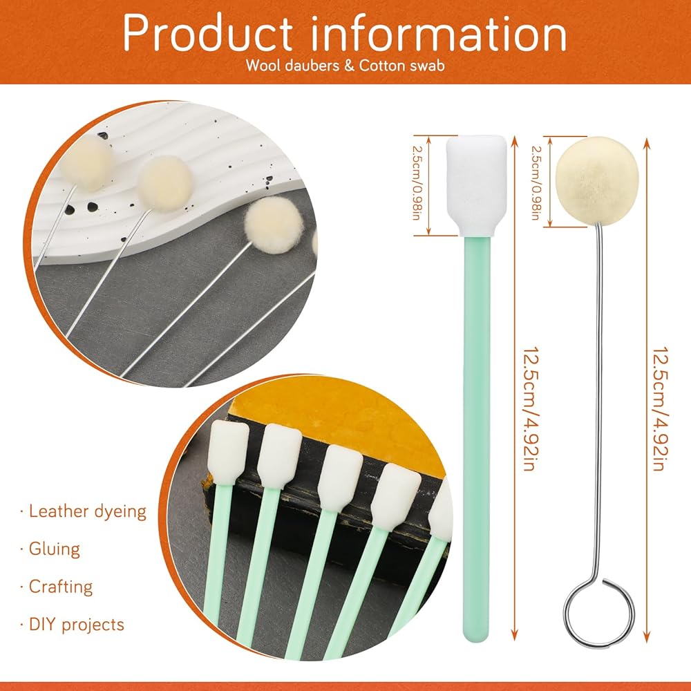 Wool Daubers: You will get 50 pcs 12.5cm/4.92inch wool daubers ball brush, and 30 pcs cleaning swab sticks. Wool Daubers are available in large enough quantities for long-term use. Leather dauber set accessories can be used together to meet your various needs.