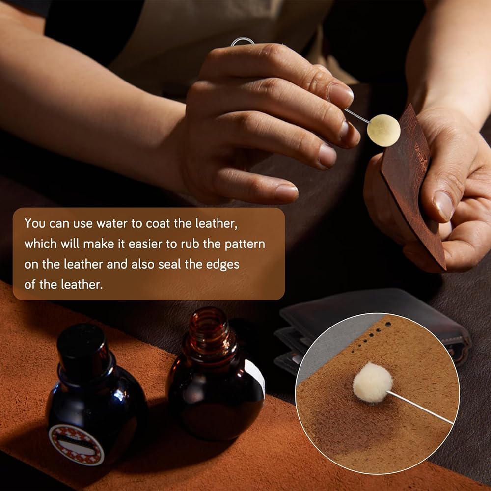 Premium Leather Dye Brush: Wool daubers are made of protein and have a long service life. In addition, you can identify it by burning it. After burning, it turns into carbon crystals, which means it is a good material.