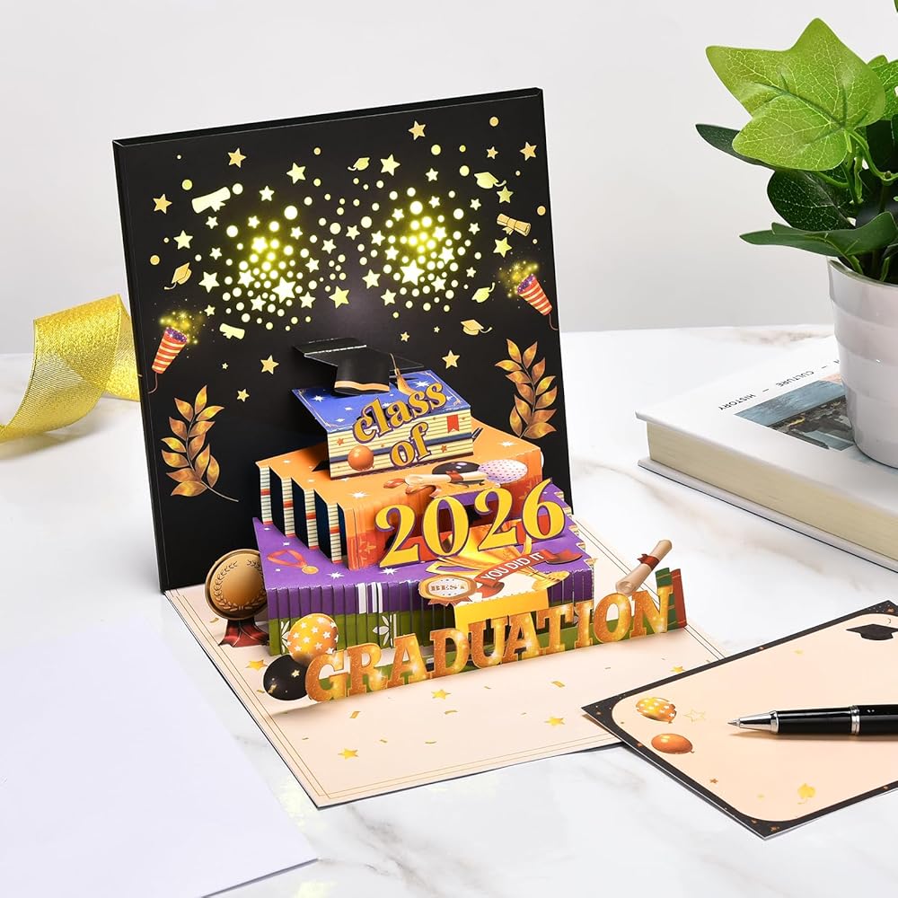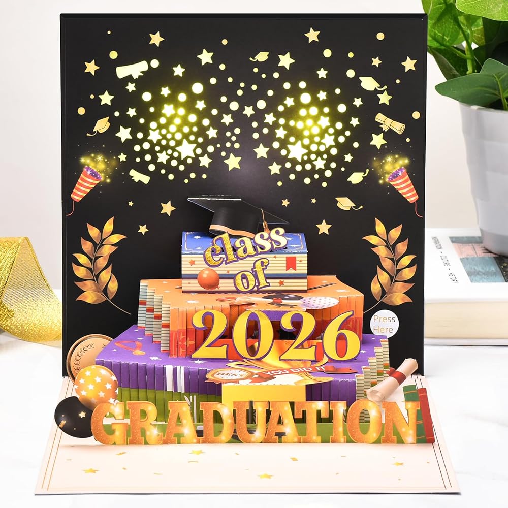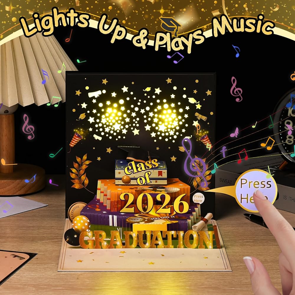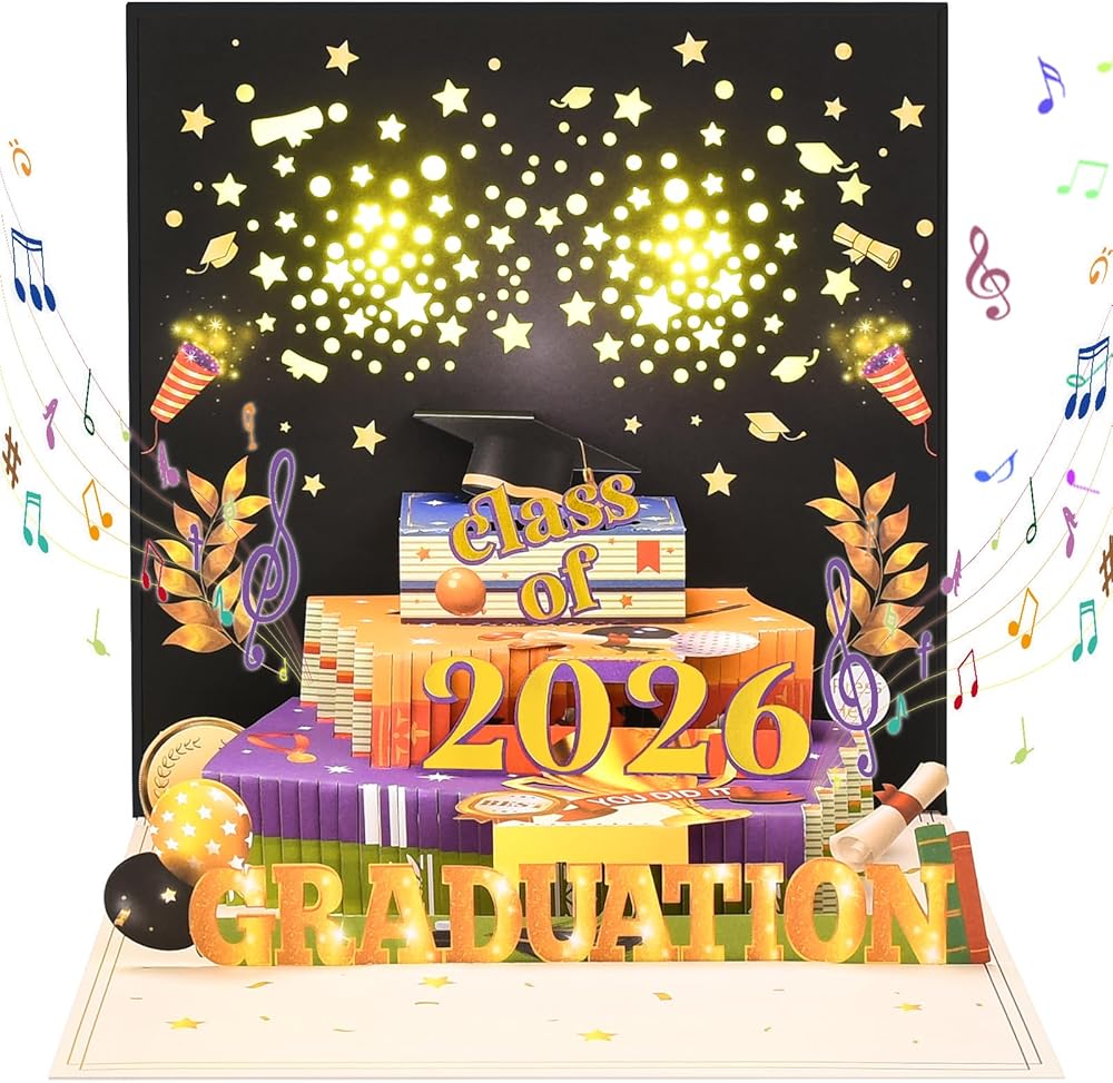 BEST GIFT ALTERNATIVE: This card is not just a simple greeting card, it's a thoughtful and meaningful gift to congratulate the graduate and wish them the best in their next chapter with a musical graduation card that's sure to make them smile. This 2024 graduation card is the perfect for any graduation like high school or college grad. Congratulate someone on their graduation with this gorgeous graduation pop up card. Happy Graduation Day!