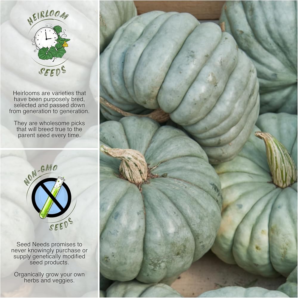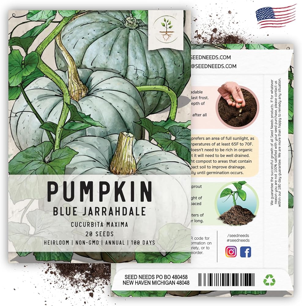 قم بزراعة قرع جاراهدال الأزرق من بذور القرع ماكسيما الطازجة. Blue Jarrahdale هو إرث ينتج قرعًا بحجم 10 إلى 14 بوصة ذو بشرة رمادية شاحبة وبشرة زرقاء تقريبًا. سينتج كل نبات قرع حوالي 3 إلى 5 ثمار لكل كرمة وسيزن كل فاكهة حوالي 6 إلى 12 رطلاً. سوف تنمو النباتات نفسها إلى ارتفاع ناضج يبلغ طوله من 12 إلى 24 بوصة فقط وتنتشر بطول متفاوت يتراوح من 10 إلى 15 قدمًا. يستخدم القرع بشكل شائع للفطائر، ويُعد Blue Jarrahdale Pumpkin فطيرة رائعة بلحمه البرتقالي الخالي من الخيوط.