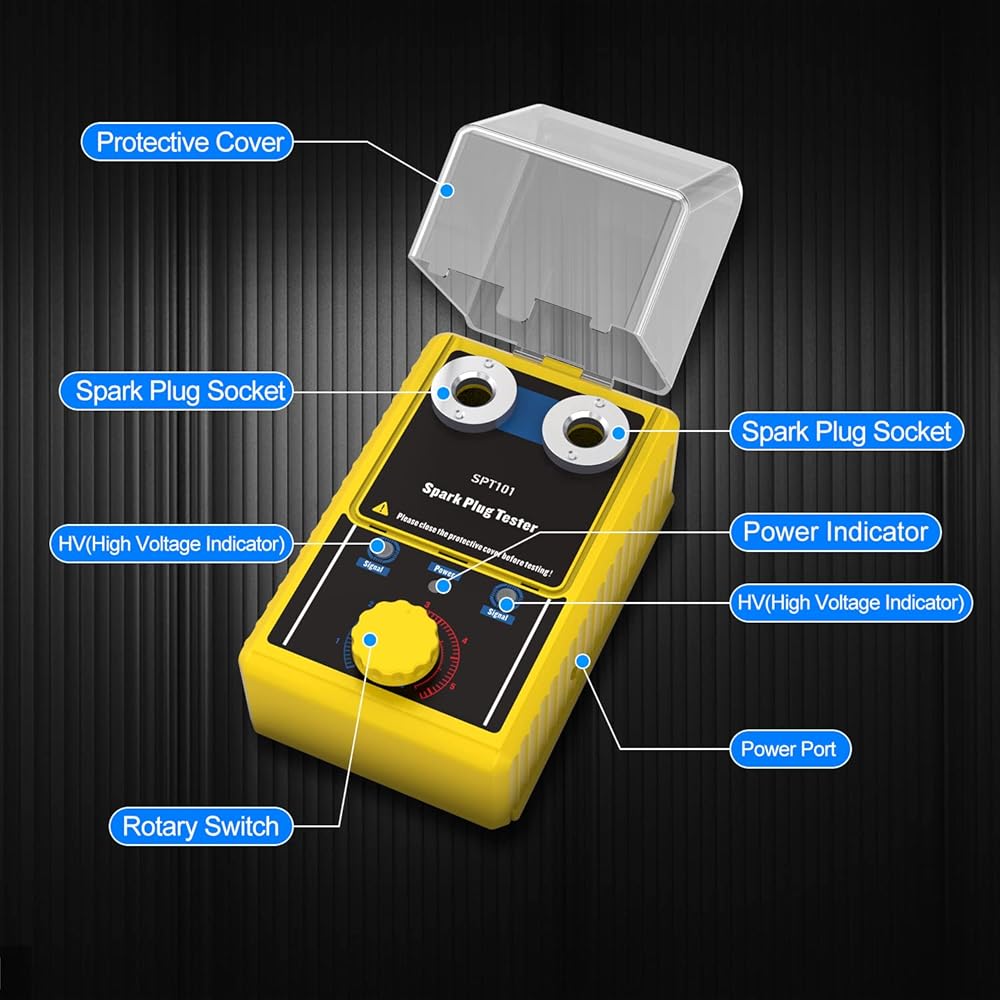 [سهل الاستخدام] تشغيل جهاز اختبار الإشعال بسيط للغاية. ضع قابس الإشعال، وقم بتغطية الغطاء الواقي، وقم بتوصيل مصدر الطاقة لبدء الاستخدام. تم تجهيز جهاز اختبار شمعة الإشعال بمصدر طاقة وضوء مؤشر الجهد العالي لمراقبة حالة شمعة الإشعال.