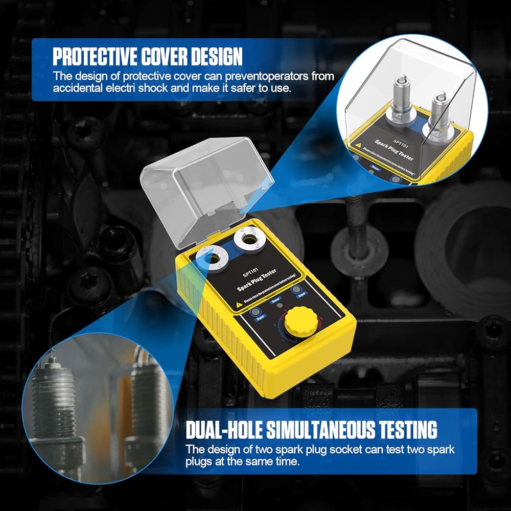جهاز اختبار شرارة السيارة بفتحات مزدوجة 0-6000 دورة في الدقيقة، تردد العمل 110 فولت، جهاز اختبار شرارة متوافق مع جميع اختبارات سدادات الإشعال لمحركات العمود المرفقي والدراجات النارية