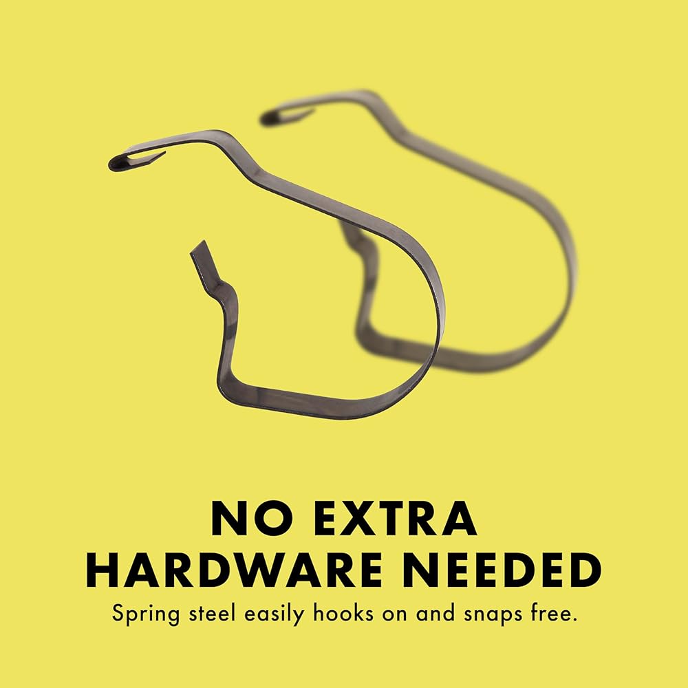 Spring steel easily hooks on and snaps free