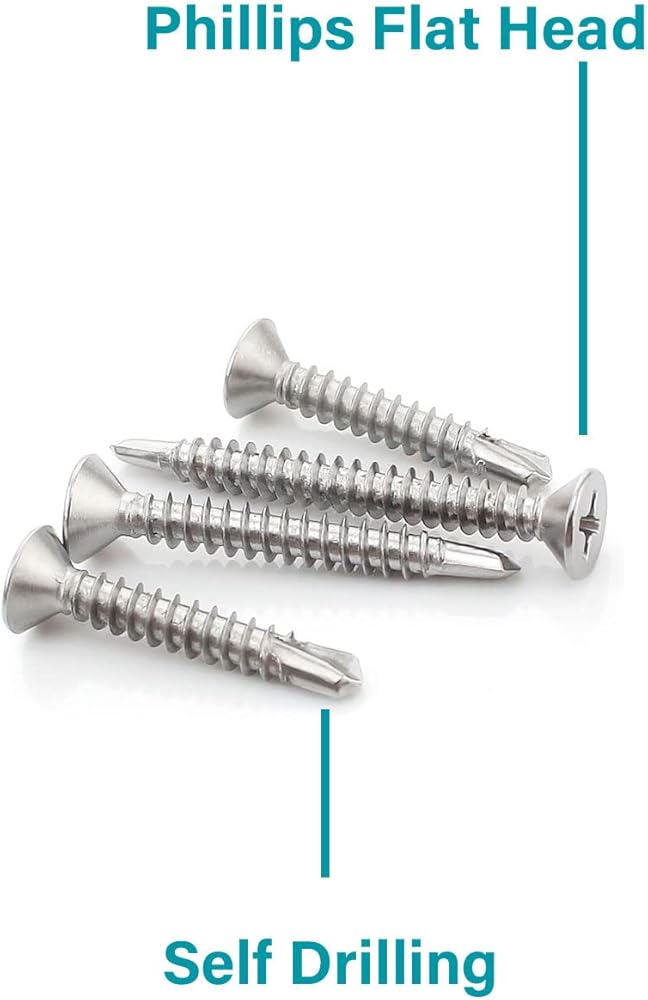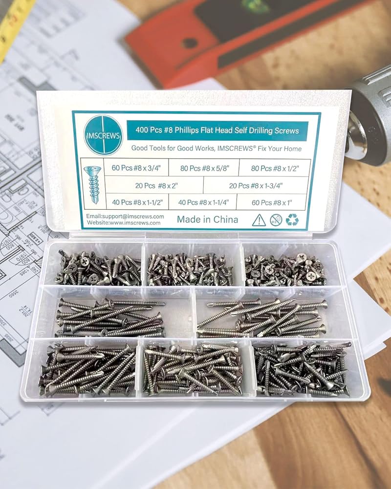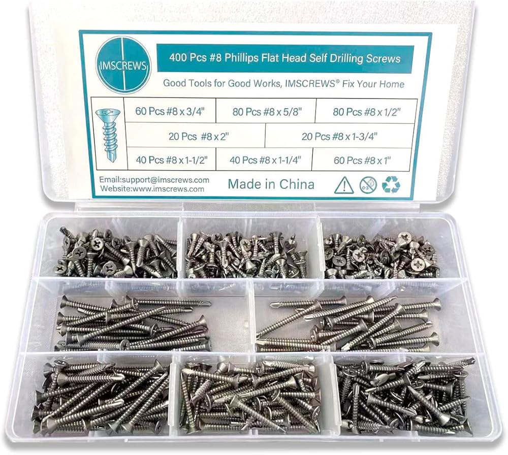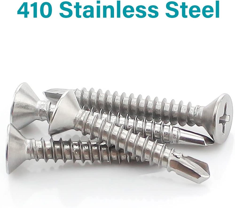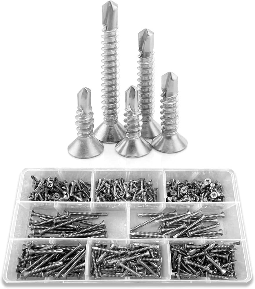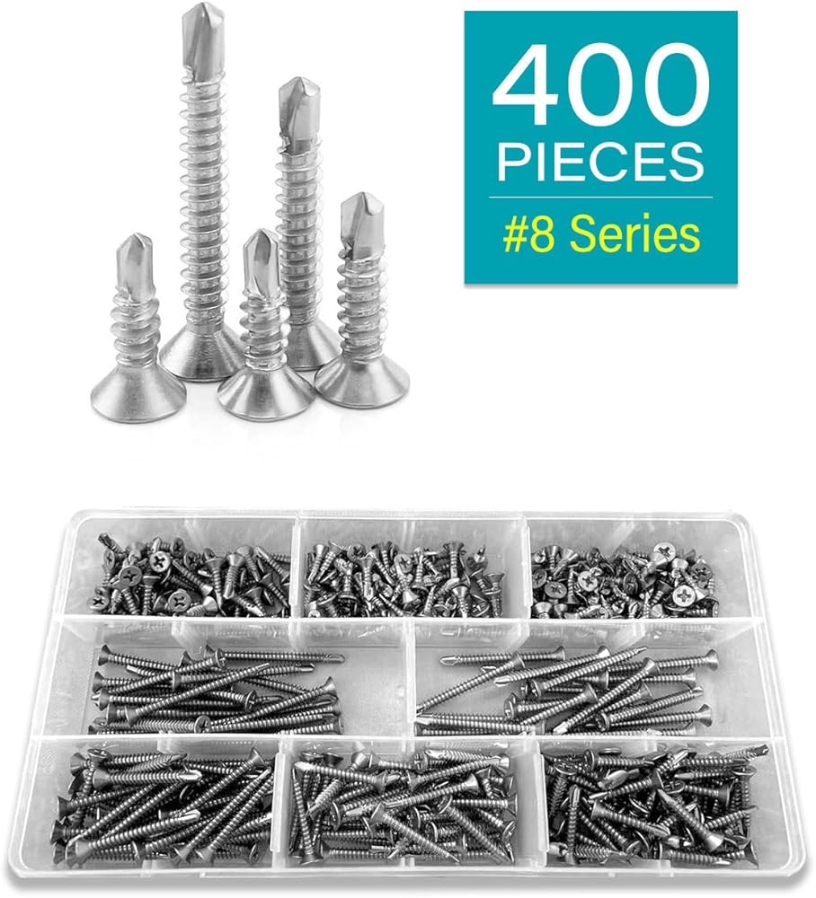 مجموعة متنوعة من براغي معدنية ذات رأس مسطح من الفولاذ المقاوم للصدأ بخيط كامل من الفولاذ المقاوم للصدأ 410 مع محرك فيليبس، 400 قطعة - مثالية لأعمال النجارة والأعمال المعدنية والمشروعات اليدوية