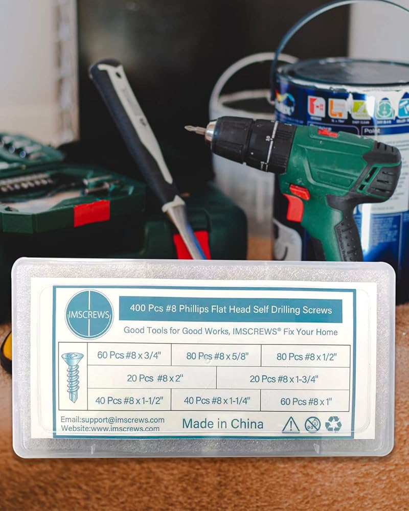 مجموعة من الأحجام: #8 × 1/2 بوصة، #8 × 3/4 بوصة، #8 × 5/8 بوصة، #8 × 1 بوصة، #8 × 1-1/4 بوصة، #8 × 1-1 /2"، #8 × 1-3/4"، #8 × 2"