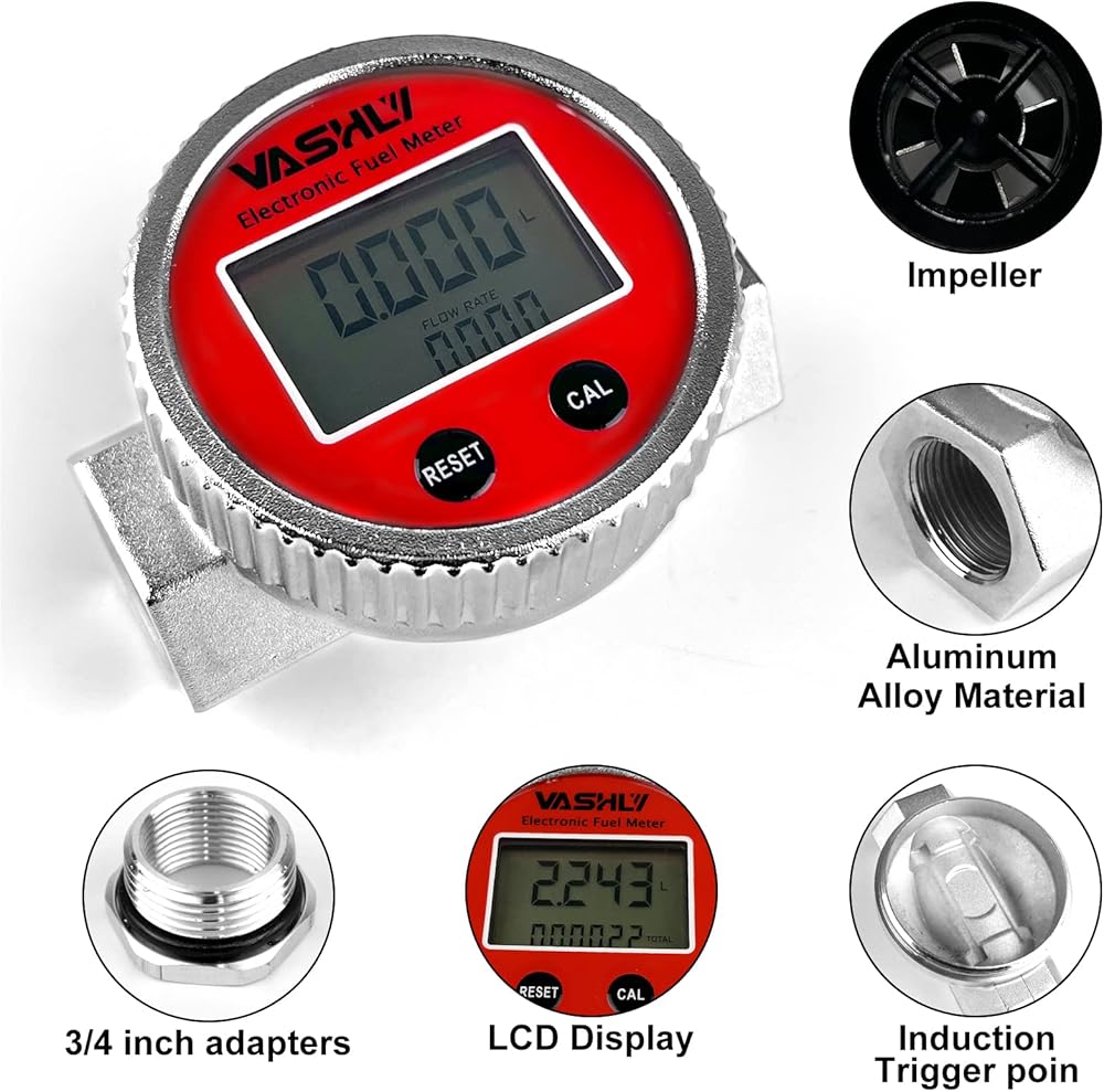 شاشة LCD رقمية --- تعرض شاشات العرض عالية الوضوح التدفق الفوري والتراكمي مع عداد NPT، نطاق التدفق 3/4 بوصة: 15-120 لتر / دقيقة