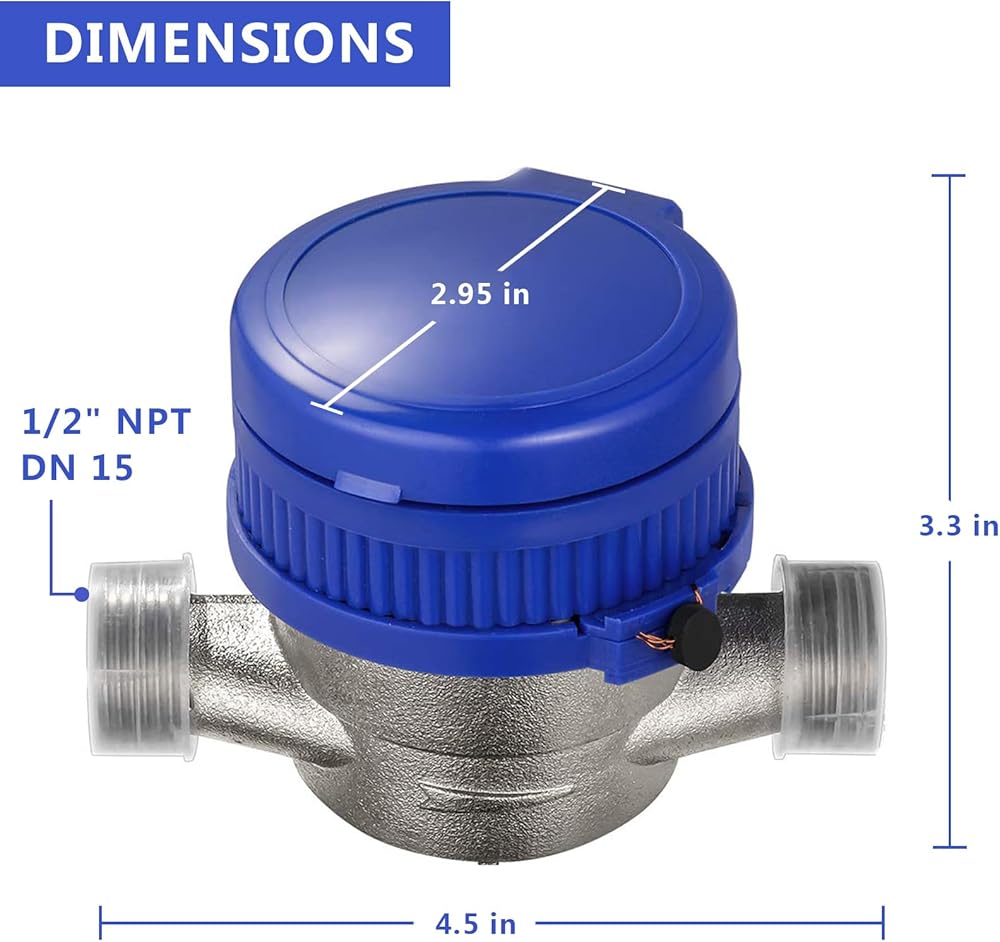 معدن الماء، مقياس التدفق، DN15، وصلات 1/2 بوصة NPT، عداد مياه بارد دقيق لفترة طويلة، للاستخدام في الحديقة والمنزل