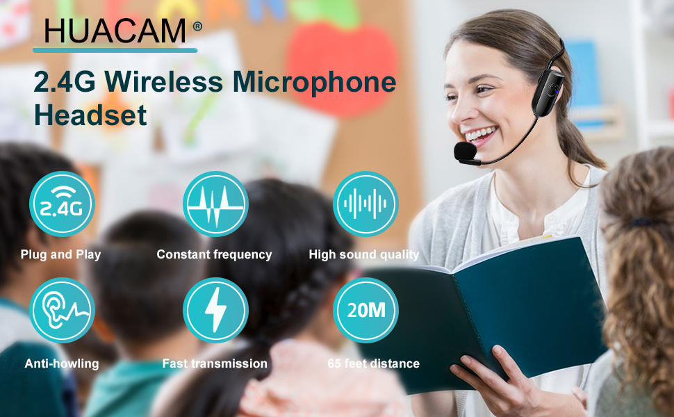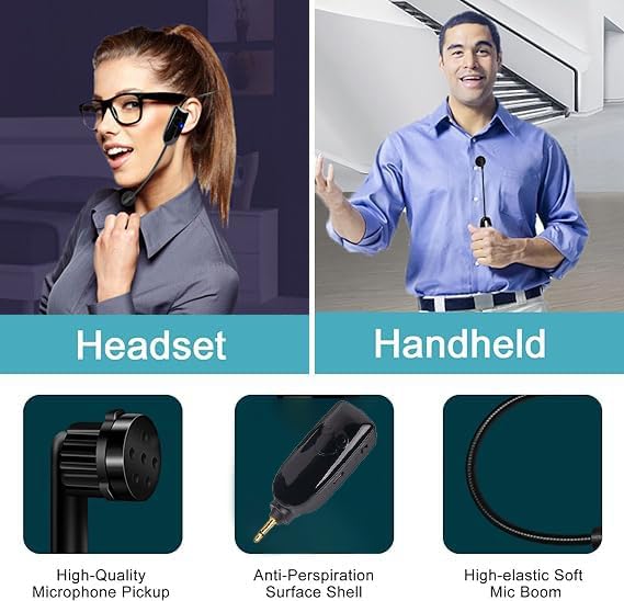 ميكروفون لاسلكي 2.4G لتدريس مكبر الصوت مناسب لمكبرات الصوت في محطة المزج، وسماعات الأذن، ومحاضري المسرح، والمرشدين السياحيين، ومدربي اللياقة البدنية، ومدى 2 في 1 20 مترًا