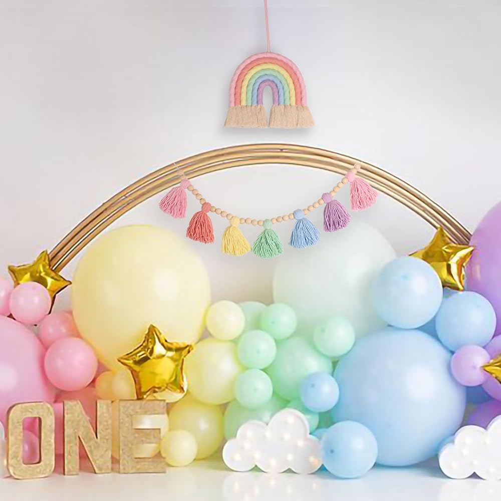 مجموعة متنوعة من الألوان - الألوان النابضة بالحياة لهذا الإكليل المصنوع من الخرز الخشبي والتعليق على الحائط المزخرف بألوان قوس قزح سوف تنعش وتضفي إشراقة على بيئتك مع ألوان الماكارون قوس قزح في ظلال الباستيل المطابقة. تمثل ألوان قوس قزح الاحتفالية من الداخل إلى الخارج باستخدام اللون الوردي والأزرق والأخضر والأصفر والبرتقالي والباستيل متعددة الألوان مناسبة لمواضيع متعددة، ومناسبة لخلق جو مريح ودافئ في أي غرفة، وإضافة اللمسة النهائية إلى منزلك المنزل وكذلك الطرف.