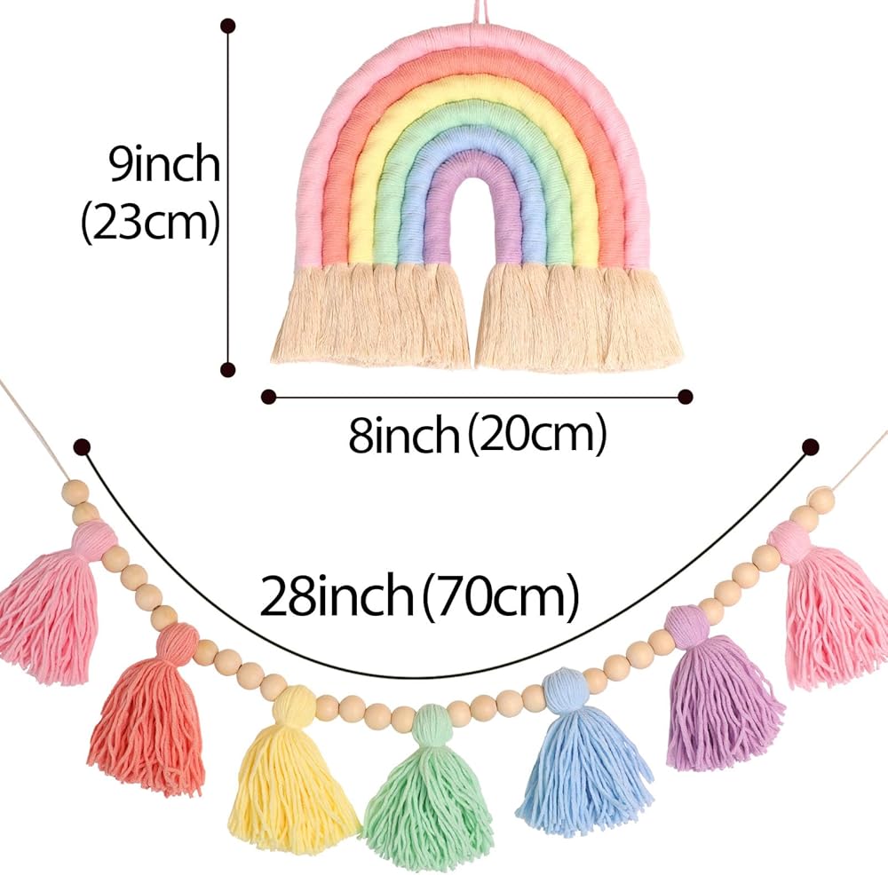 المقاس يناسب - يبلغ طول شرابة إكليل الخرز الخشبي حوالي 28 بوصة، ويبلغ حجم قلادة قوس قزح حوالي 9 بوصات في الطول والعرض، وهو الحجم المناسب، هذا الديكور المصنوع من الخرز الخشبي على شكل شرابة هو ديكورات يدوية مشرقة بنمط بوهيمي. أزياء على الطراز الاسكندنافي، مليئة بالأجواء الفنية، يمكنها إضافة بضعة ألوان إلى الغرفة لجعل الغرفة تبدو أكثر راحة ودفئًا.