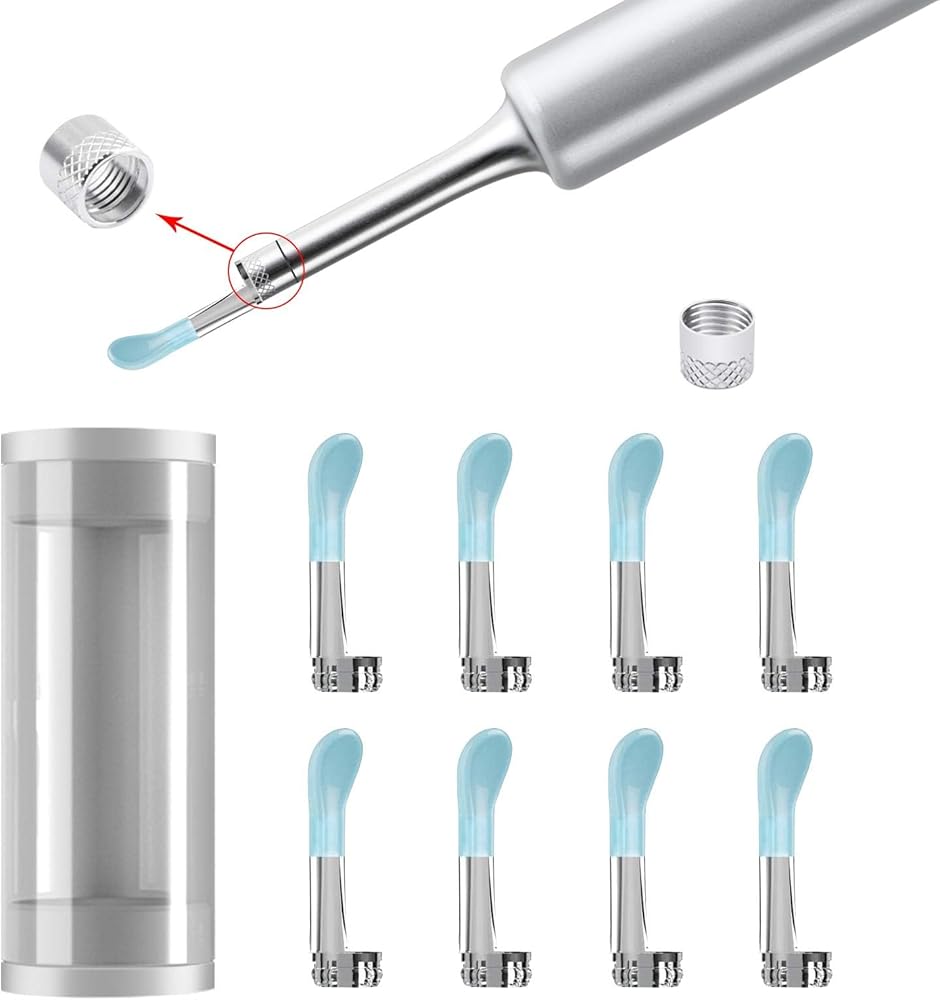 • 【Premium Quality】Replacement ear cleaner tips are made of high-quality plastic and silicone materials, surface smooth, and won't scratch your ear canal. The metal fixed ring structure makes the ear snoop and otoscope connected very firmly and will not accidentally fall off