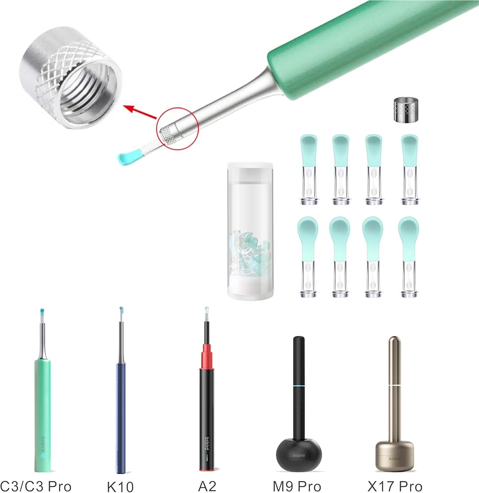 Bebird استبدال طرف الأذن، 8 قطع ملعقة أذن سيليكون مقاومة للماء لتنظيف الأذن مع الكاميرا، نصائح BEBIRD الأصلية لتنظيف الأذن