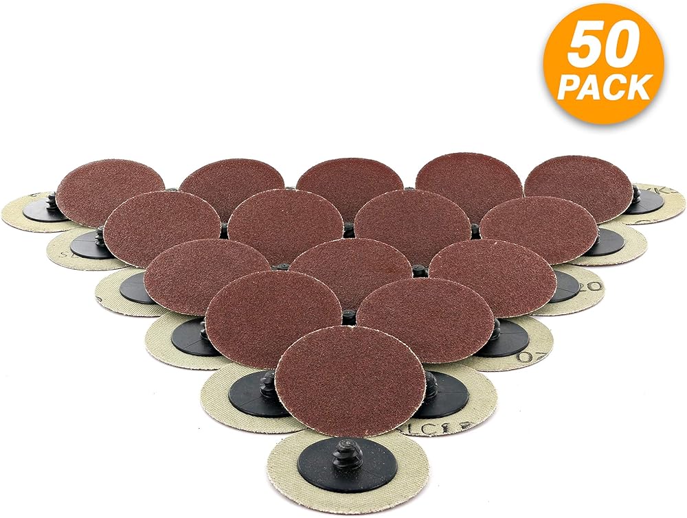 ✓ SPECS: You get 50 pieces of the 2 inch diameter Roll Lock Sanding/Grinding Discs with a 120 Grit.