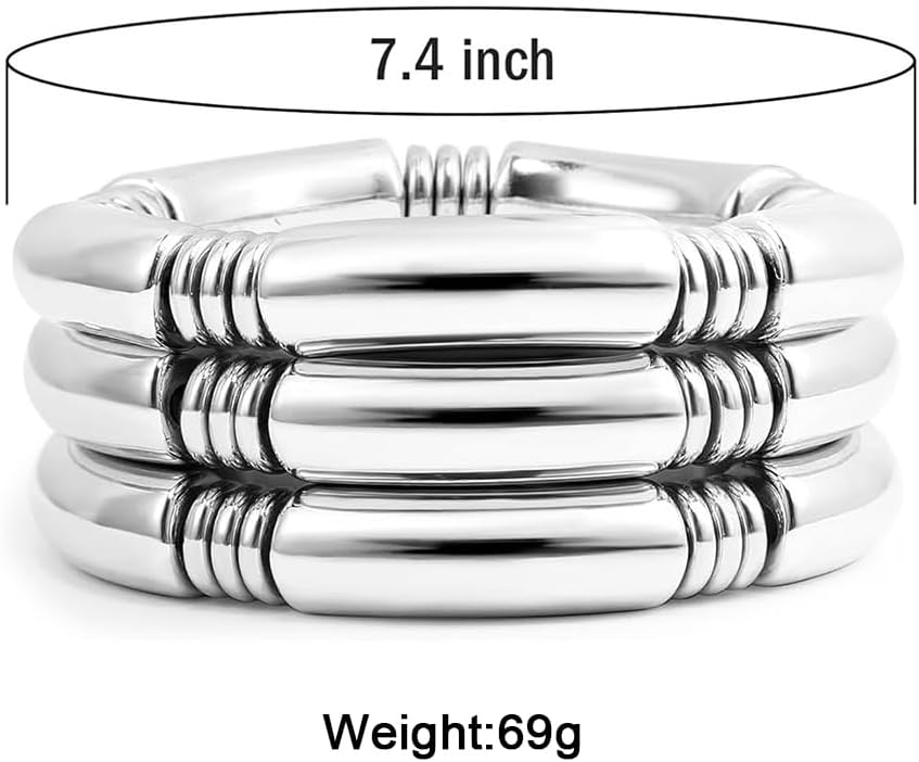 Stack Layered Curved Bangles Size: The perimeter of the bracelet is approx 7.4 inch which,the weight of the three bracelets is 60g, is suitable for most people wrist size. Besides, the bracelets are stretchable, it is convenient for your to wear and take off