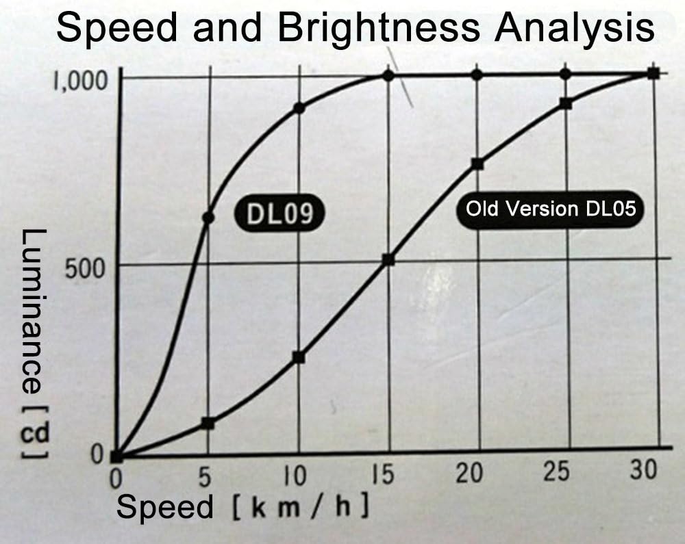 Lighting range is wide. High brightness with low riding speed, even walking speed.