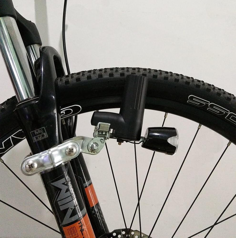 1 x zinc plated bracket ((Max inner diameter about 1.65 inch. It is easy to mounte on the front fork of mountain bike)