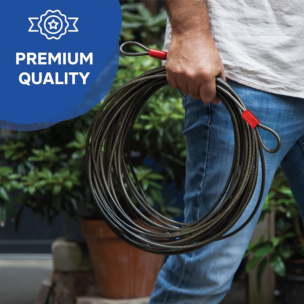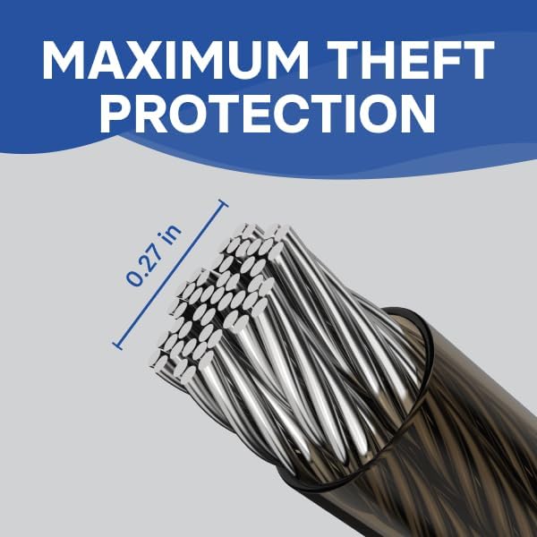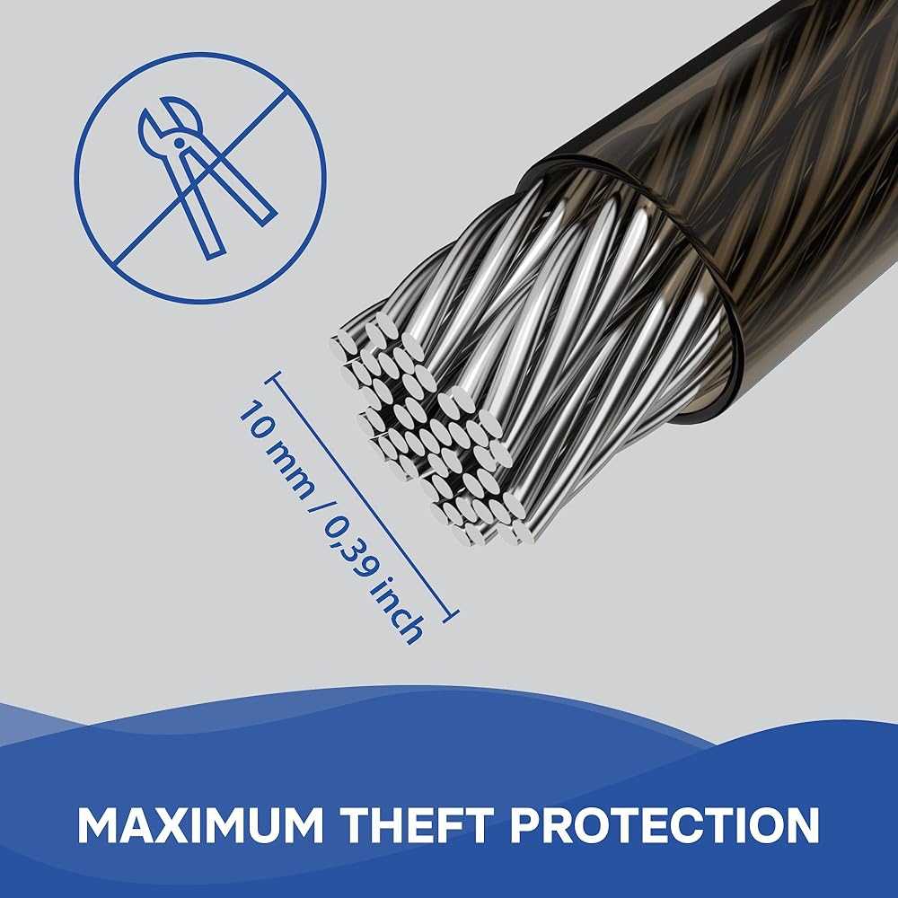قلب فولاذي قوي: بقطر 0.39 بوصة أو 0.79 بوصة وقلب فولاذي متين، يوفر جهاز كابل القفل المضاد للسرقة هذا مستوى عالٍ من الأمان. الكابل الموجود في حبل الأمان مطلي أيضًا ببلاستيك ناعم وعالي الجودة