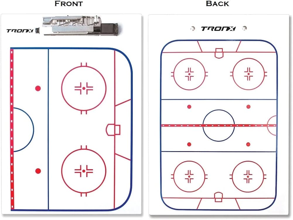- Double-sided hockey coaches clipboard with sturdy clip to hold dry erase marker