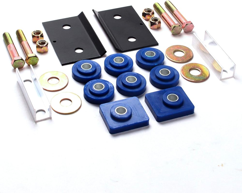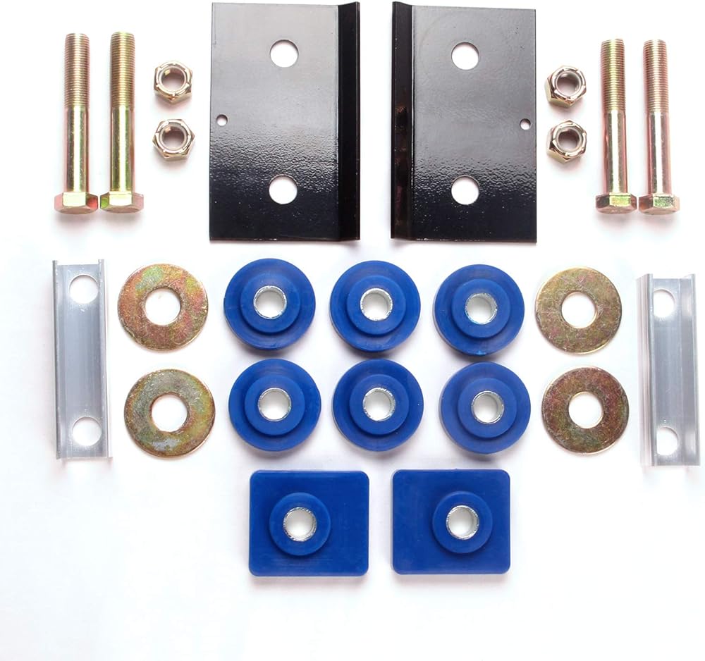 - Package Included: 6 round bushings; 2 square bushing; 4 grade 8 bolts;4 grade 8 washers ;4 grade 8 nylock nuts ;2 laser cut mount plates ;2 aluminium channel bolt holders.installation instruction is not included