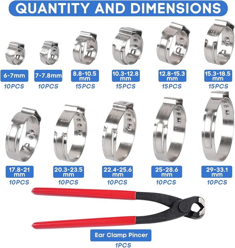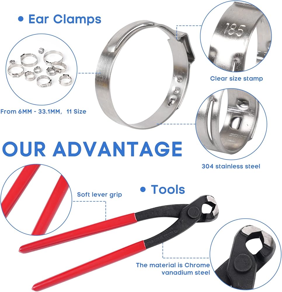 【الاستخدام: مشابك الأذن Wissxna مناسبة للاستخدام في مجموعة متنوعة من تركيبات الغلق، وإصلاح أنظمة الأنابيب في الداخل والخارج. يستخدم على نطاق واسع بشكل مثالي للسيارات والصناعية والقوارب/البحرية والدرع والمنزل وما إلى ذلك.