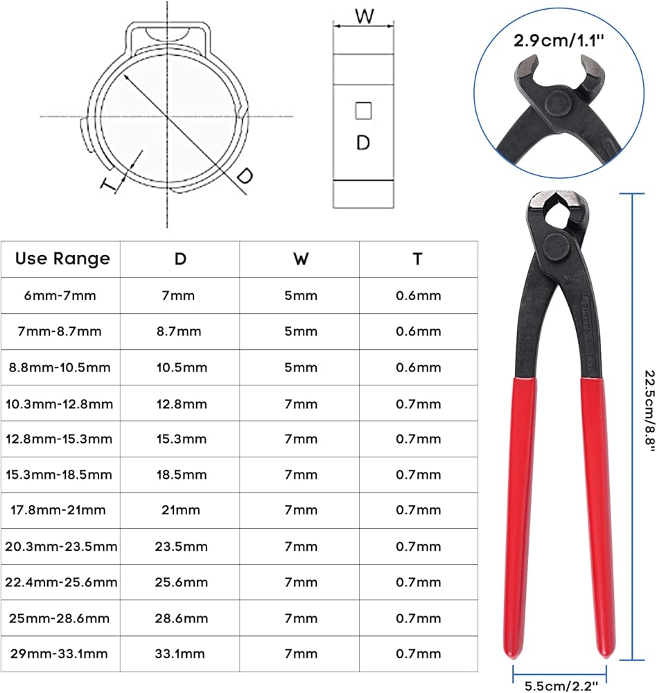 【احصل على المزيد】تتراوح 130 قطعة من 6 مم إلى 33.1 مم. 11 مقاسًا مع أداة كماشة واحدة في صندوق تخزين قابل لإعادة الاستخدام.