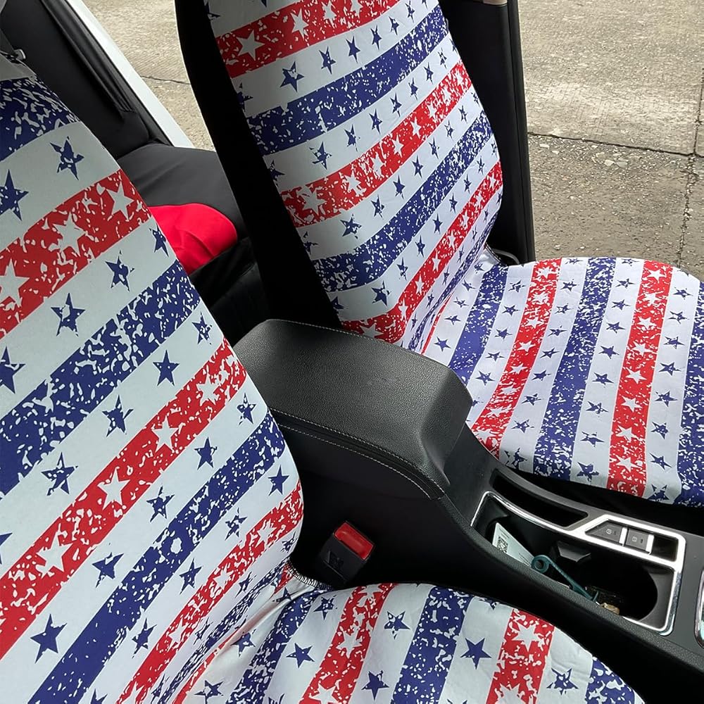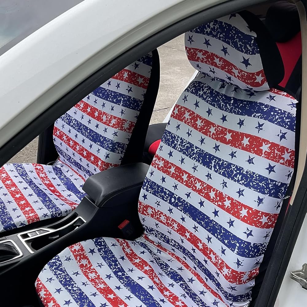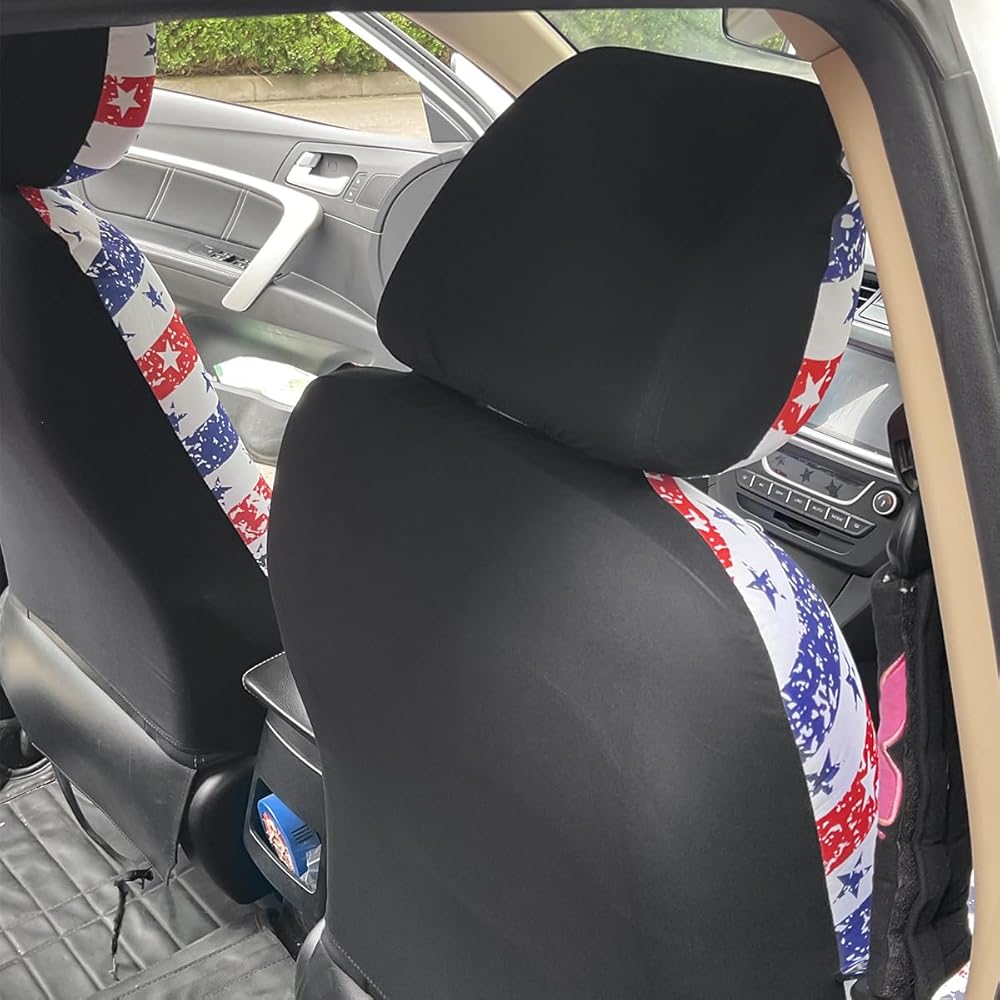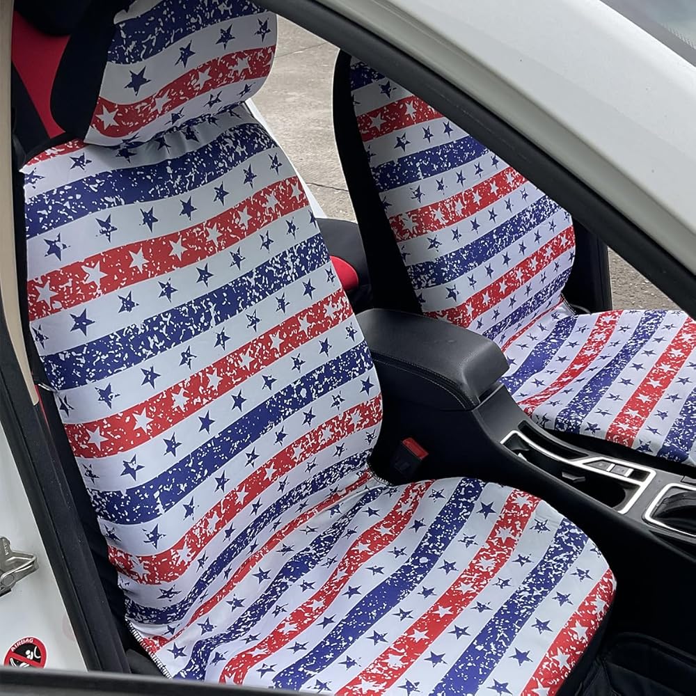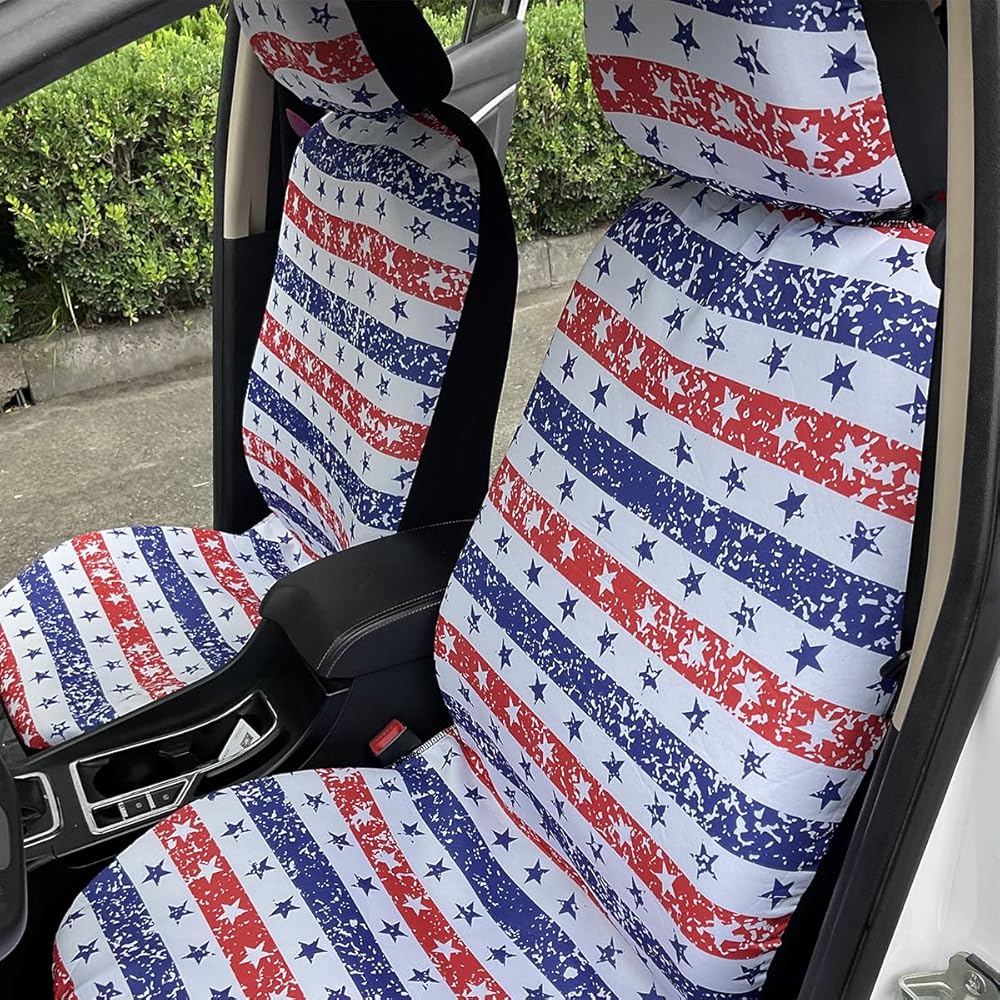 【Stylish Design】: These are the perfect seat covers for your new car, updating the look of an old or dirty seat, or decorating a new car you just bought. The personalized pattern design of half stars and half stripes adds color to the car interior. It gives you a different experience, increasing the comfort and happiness of driving.