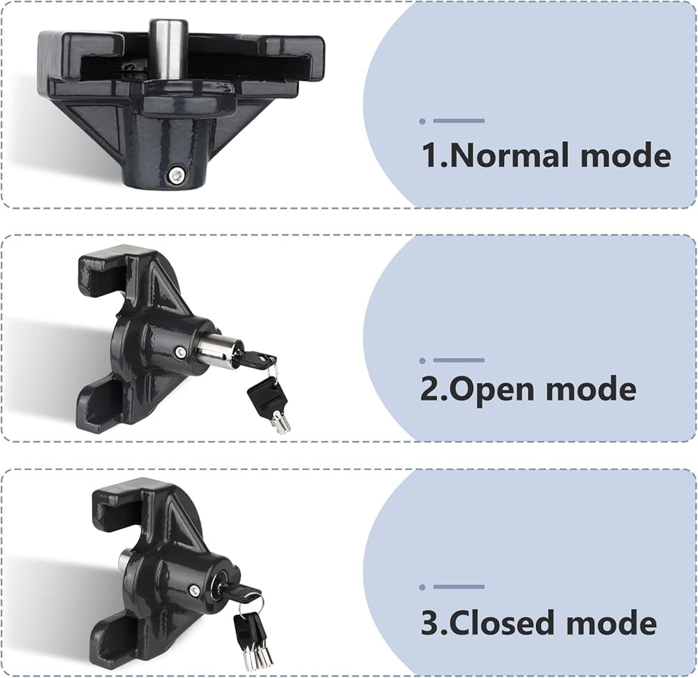 【قفل RV مقاس 2 بوصة】قفل RV/قفل وصلة المقطورة/قفل مقطورة القارب يوفر فصلًا مناسبًا. هذا القفل القوي مناسب لقارنات المقطورة المختارة مقاس 2 بوصة، والتصميم مناسب فقط لقارنات التوصيل ذات الشفاه المسطحة مقاس 2 بوصة، بما في ذلك 2 بوصة من اللسان المستقيم والإطار على شكل حرف A وقارنات المقطورة القابلة للتعديل.