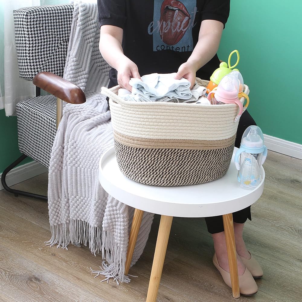 Keep all nursery essentials neatly organized and easily accessible with this Hinwo Cotton Rope Storage Basket.