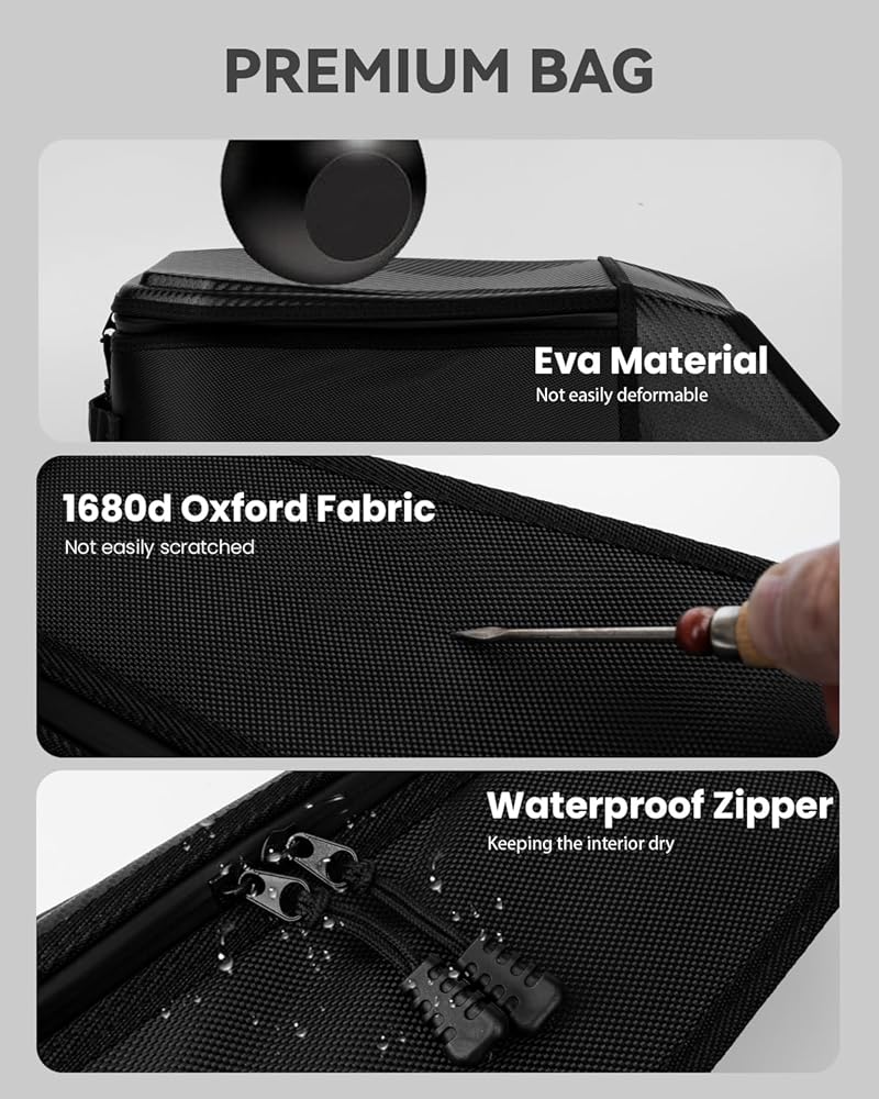 • التميز في مقاومة الطقس: مصنوعة من نسيج نايلون قوي مطلي بطبقة 1680D مع لمسة نهائية طاردة للماء يمكن الاعتماد عليها، حقيبتنا هي الحماية ضد الرطوبة، وتحافظ على مقتنياتك بالداخل جافة.