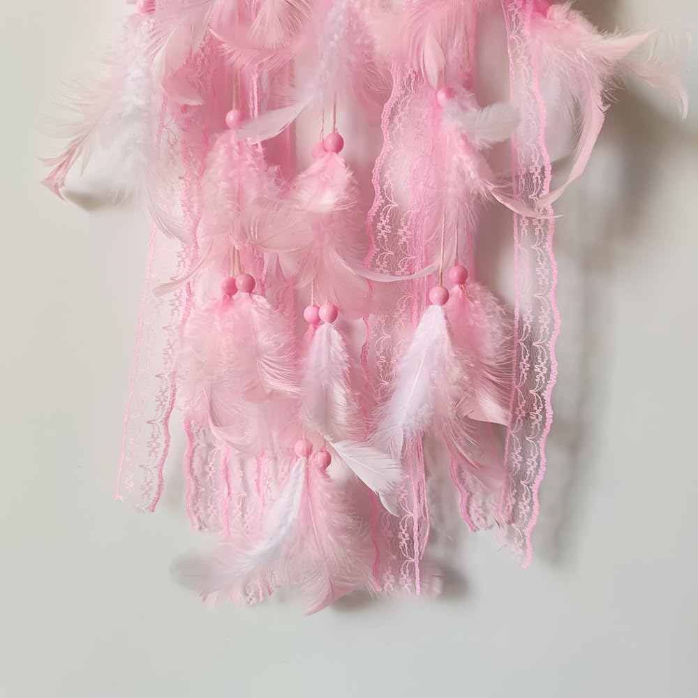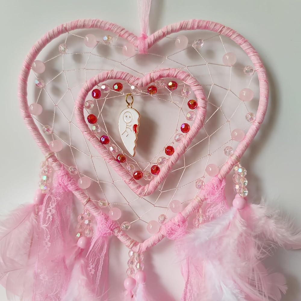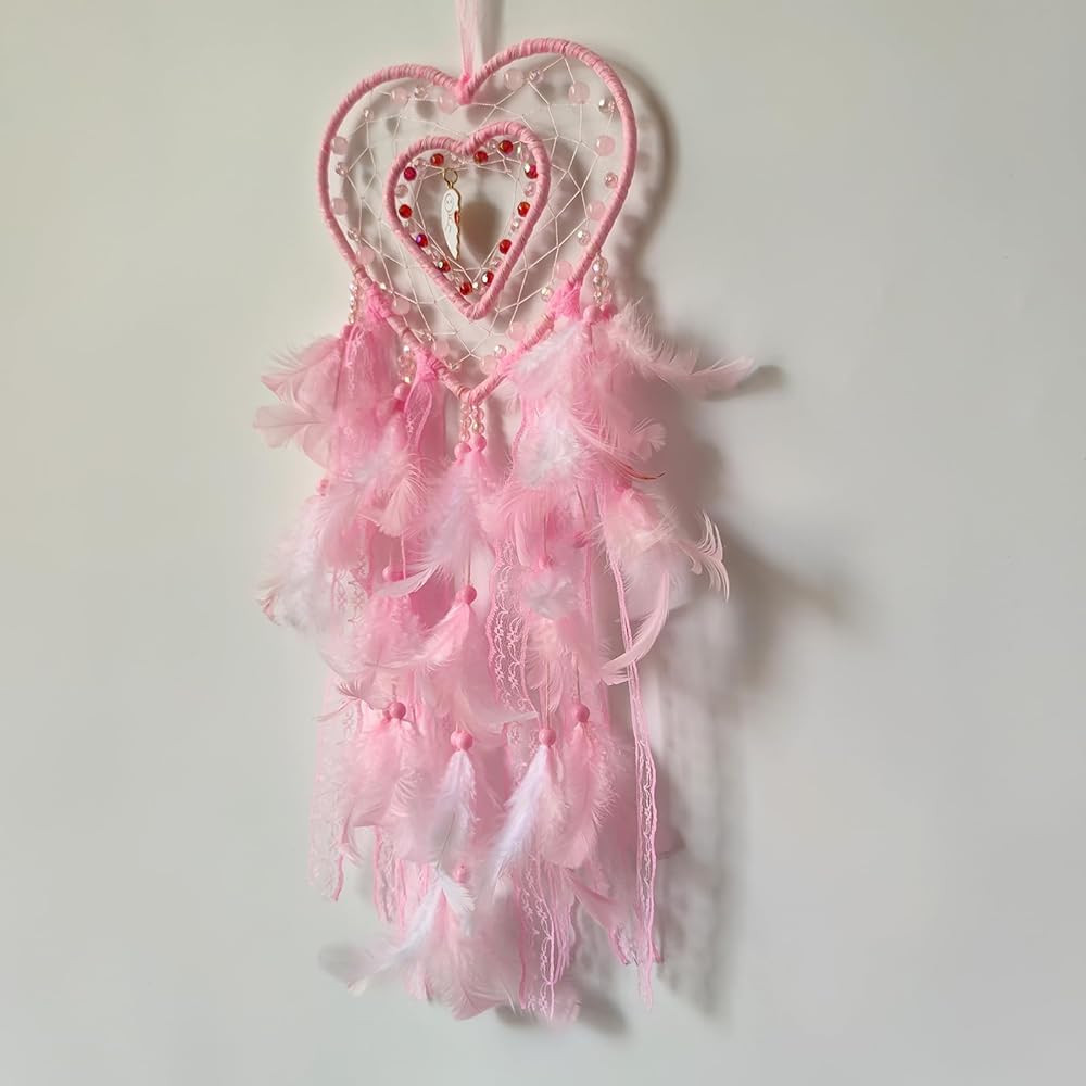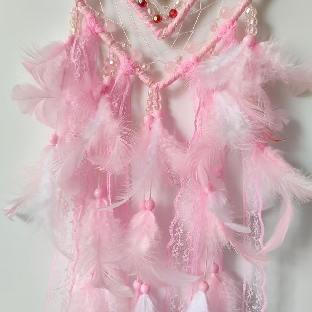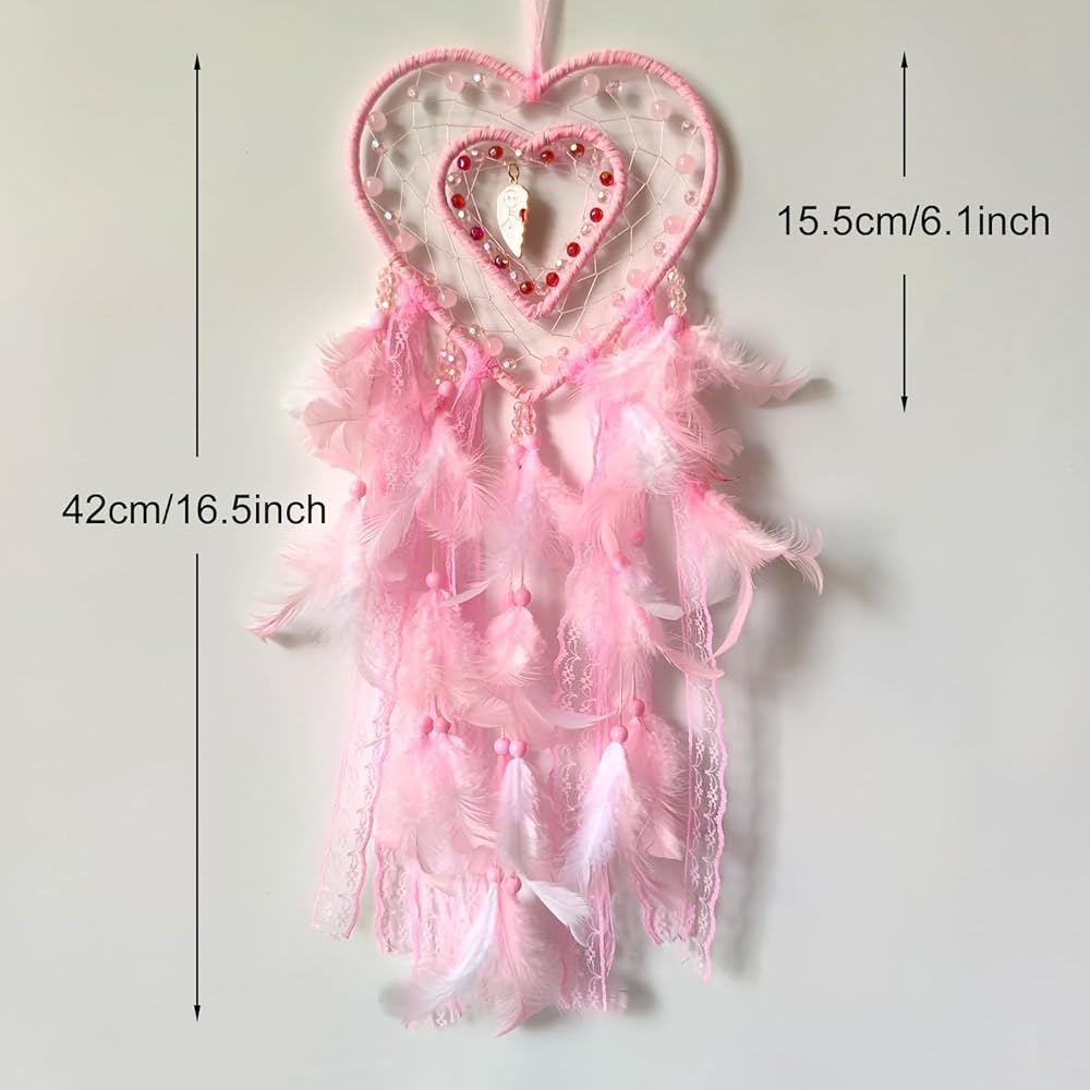 صائدة الأحلام الوردية، صائدة الأحلام على شكل قلب لغرفة النوم، صائدة الأحلام المصنوعة يدويًا لتزيين الحائط وهدايا الريش اليدوية