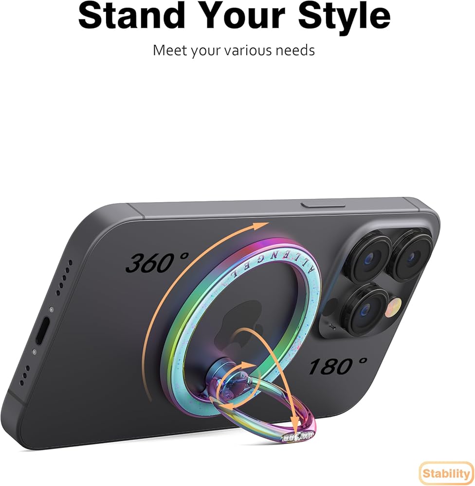 Stylish and Sturdy: Designed to be both functional and stylish, this magnetic ring holder is compatible with iPhone 15/14/13/12 series and cases, and offers hands-free stand functionality for watching videos or taking selfies.