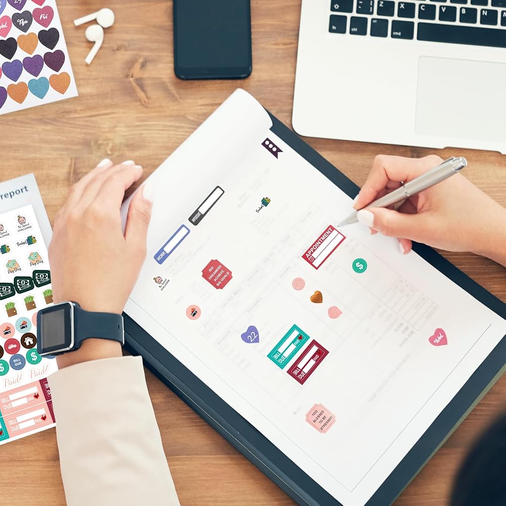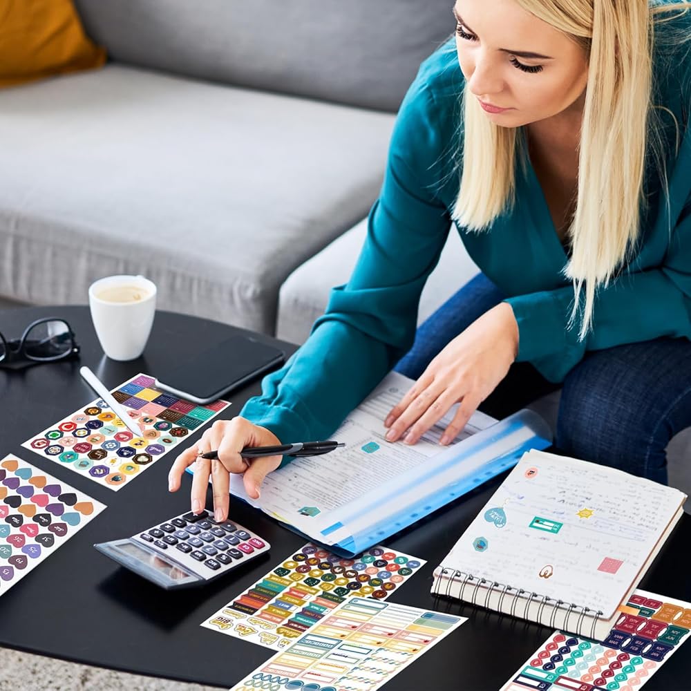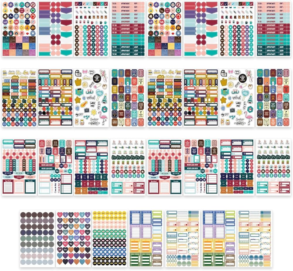 31 ورقة/1748 ملصقات مخططة، ملصقات تقويم للبالغين، ملصقات مجلة مخطط للميزانية المالية