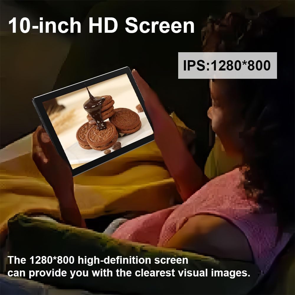 【ذاكرة وصول عشوائي 10 جيجابايت + ذاكرة تخزين داخلية 64 جيجابايت + توسيع 512 جيجابايت】تأتي الأجهزة اللوحية مقاس 10.1 بوصة مع 10 (ذاكرة افتراضية 4+6 جيجابايت) جيجابايت من ذاكرة الوصول العشوائي و64 جيجابايت من مساحة التخزين المدمجة، قابلة للتوسيع حتى 512 جيجابايت. وهذا يجعله جهازًا مثاليًا لتخزين الصور دون عناء، الموسيقى والأفلام ومقاطع الفيديو، مما يجعله الرفيق المثالي للترفيه والعمل.