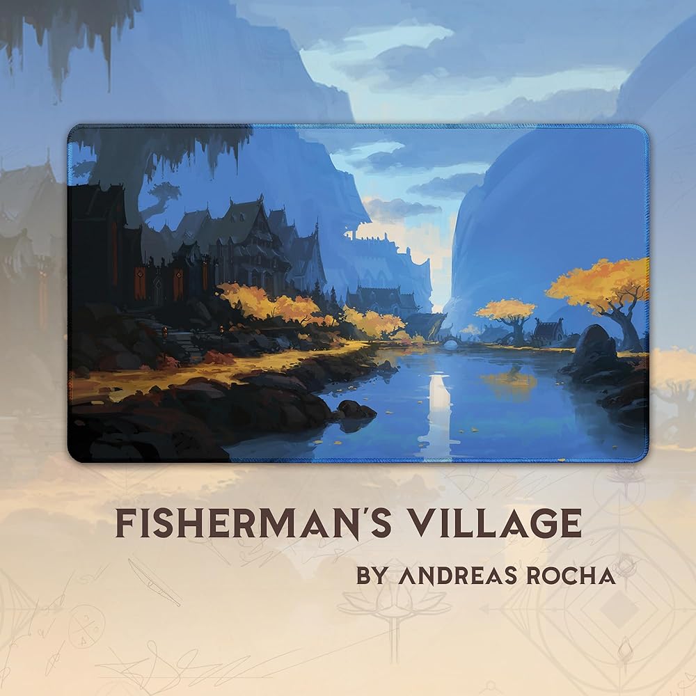 قرية الصيادين (مخيطة) - مفرش لعب MTG من أندرياس روشا - متوافق مع مفرش اللعب Magic The Gathering - Play MTG، YuGiOh، TCG - تصميمات وإكسسوارات فنية لبساط اللعب الأصلي
