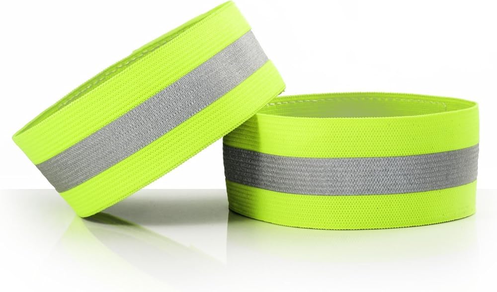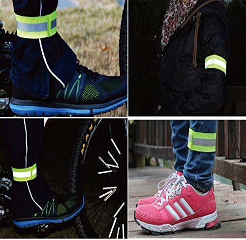CSYSX (عبوة من 2) أساور معصم عاكسة عالية الوضوح لركوب الدراجات والجري والذراع وأشرطة الكاحل وأشرطة الساق وكمشبك أساور للدراجة