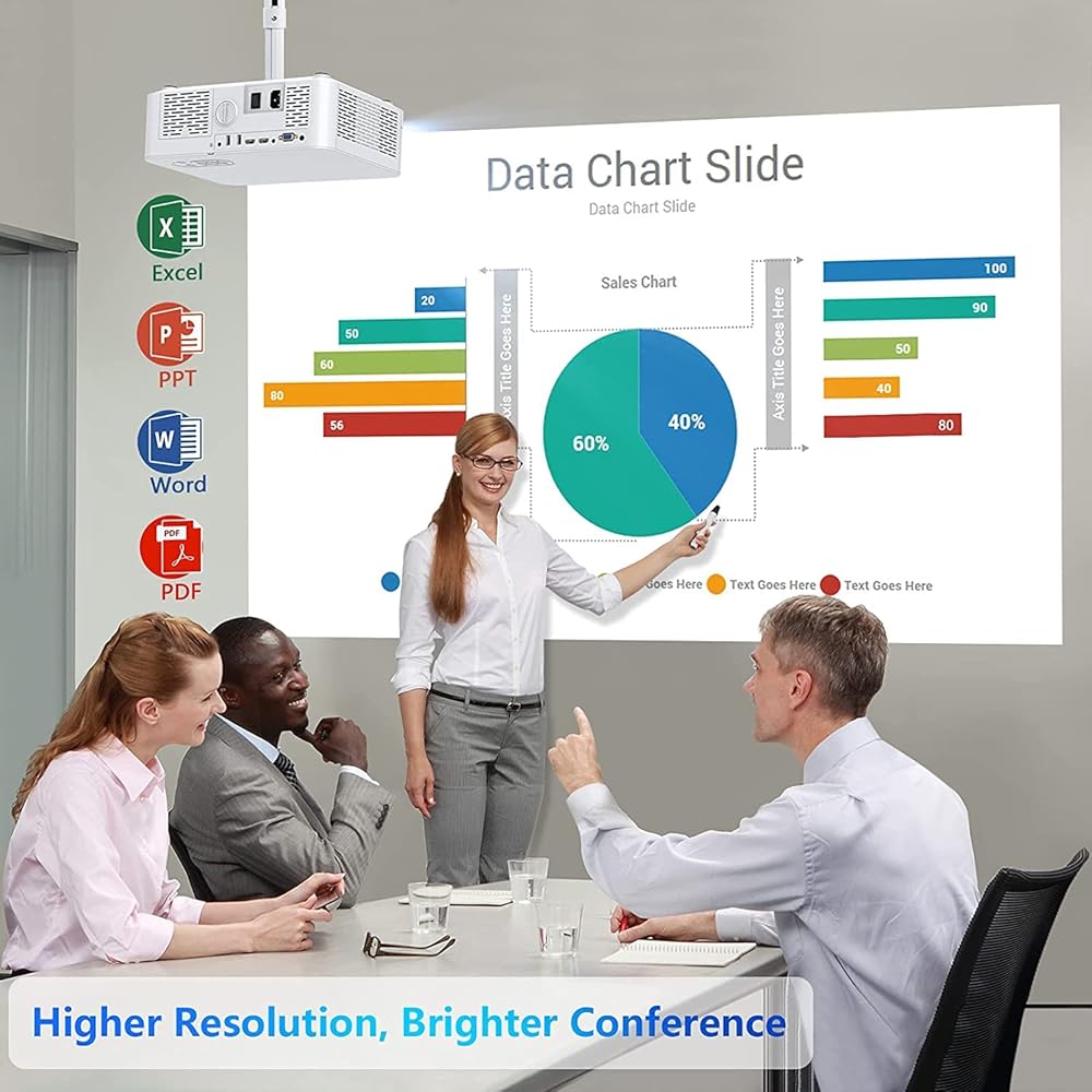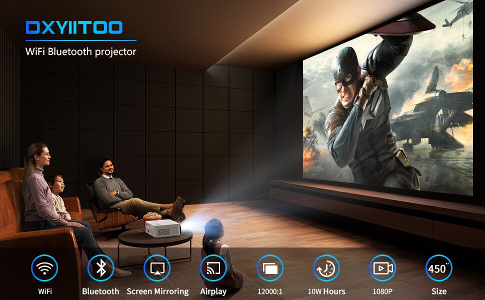 جهاز عرض واي فاي بلوتوث أصلي 1080 بكسل، شاشة 20000LM 450 بوصة تدعم جهاز عرض أفلام 4K، سطوع عالي للمسرح المنزلي والأعمال، متوافق مع iOS/Android/TV Stick/PS4/HDMI/USB/PPT/EXCEL