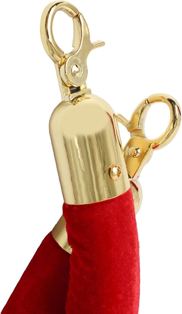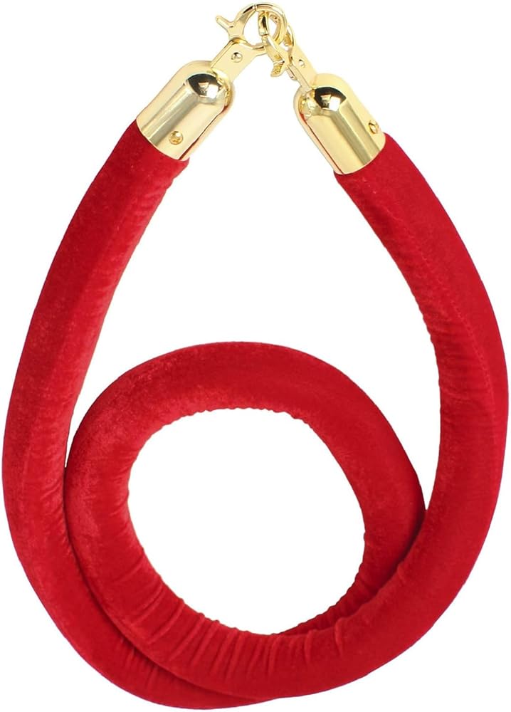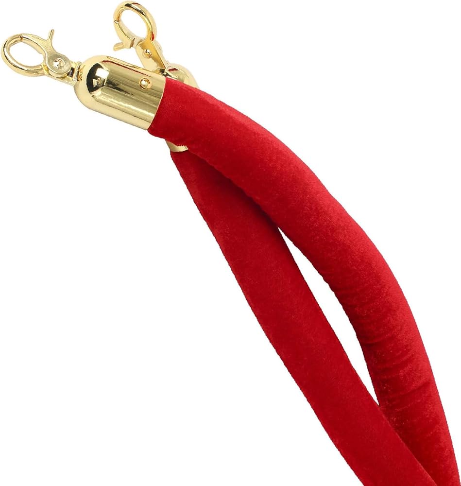 حبل مخملي من NovelBee بطول 10 أقدام مع خطافات من الفولاذ المقاوم للصدأ، حاجز خط طابور عمود التحكم في الحشود (أحمر، خطاف ذهبي)