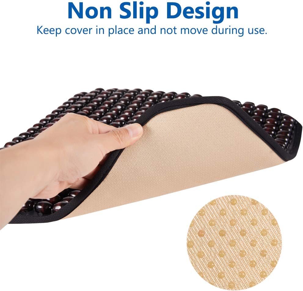 • تركيب سهل: وسادة المقعد الخشبية المطرزة سهلة التركيب. فقط ضع الوسادة على سطح مقعد السيارة. تأتي أغطية الخرز الخشبية بتصميم مانع للانزلاق مما يحافظ على وسادة المقعد في مكانها ويمنع انزلاقها من المقعد.
