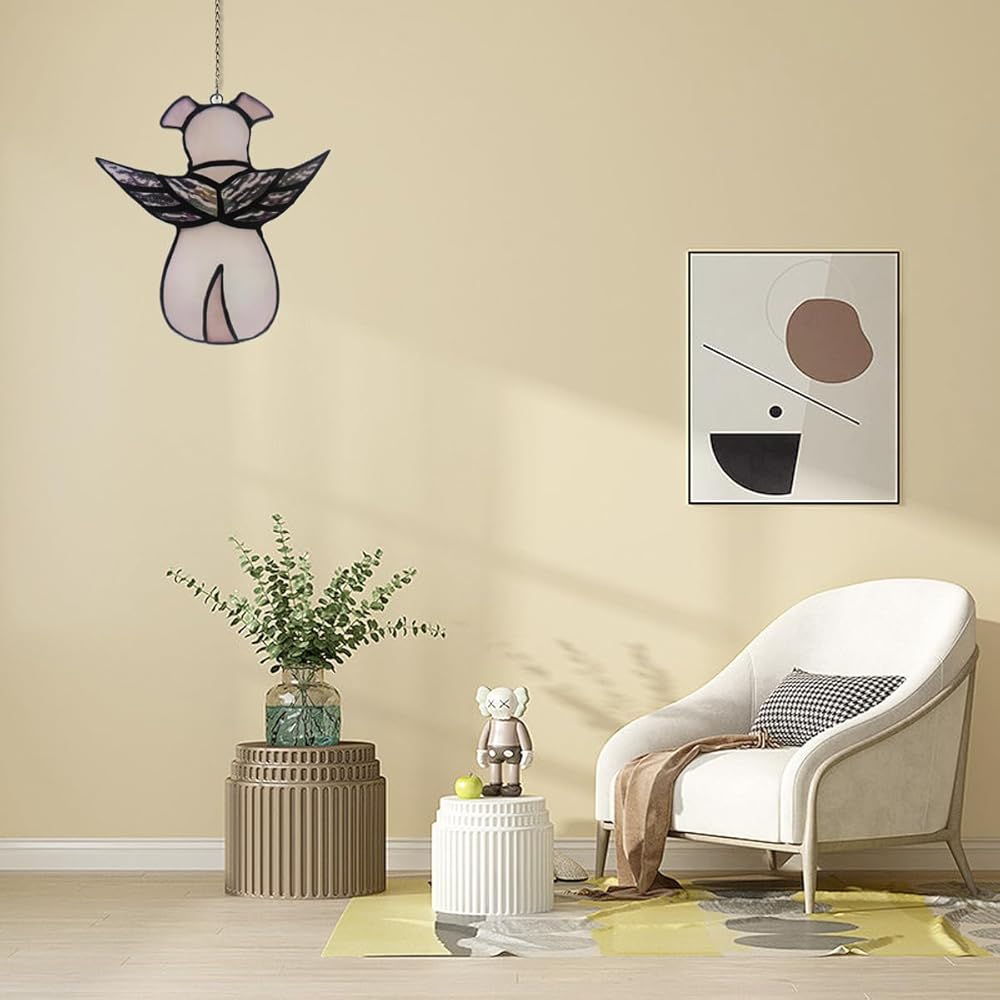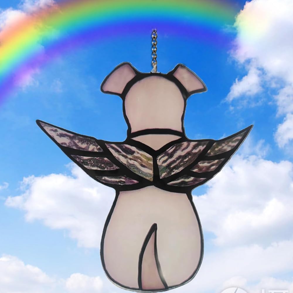 【كلب ملاك فريد من نوعه】يتميز جهاز التقاط الشمس للكلاب الخاص بنا بجناح ملاك فريد على الظهر والسحر التذكاري بالكامل مصنوع من لوح أكريليك ناقل للضوء مقاس 6.3 بوصة، والذي يعكس الألوان الزاهية عندما يضربها ضوء الشمس.
