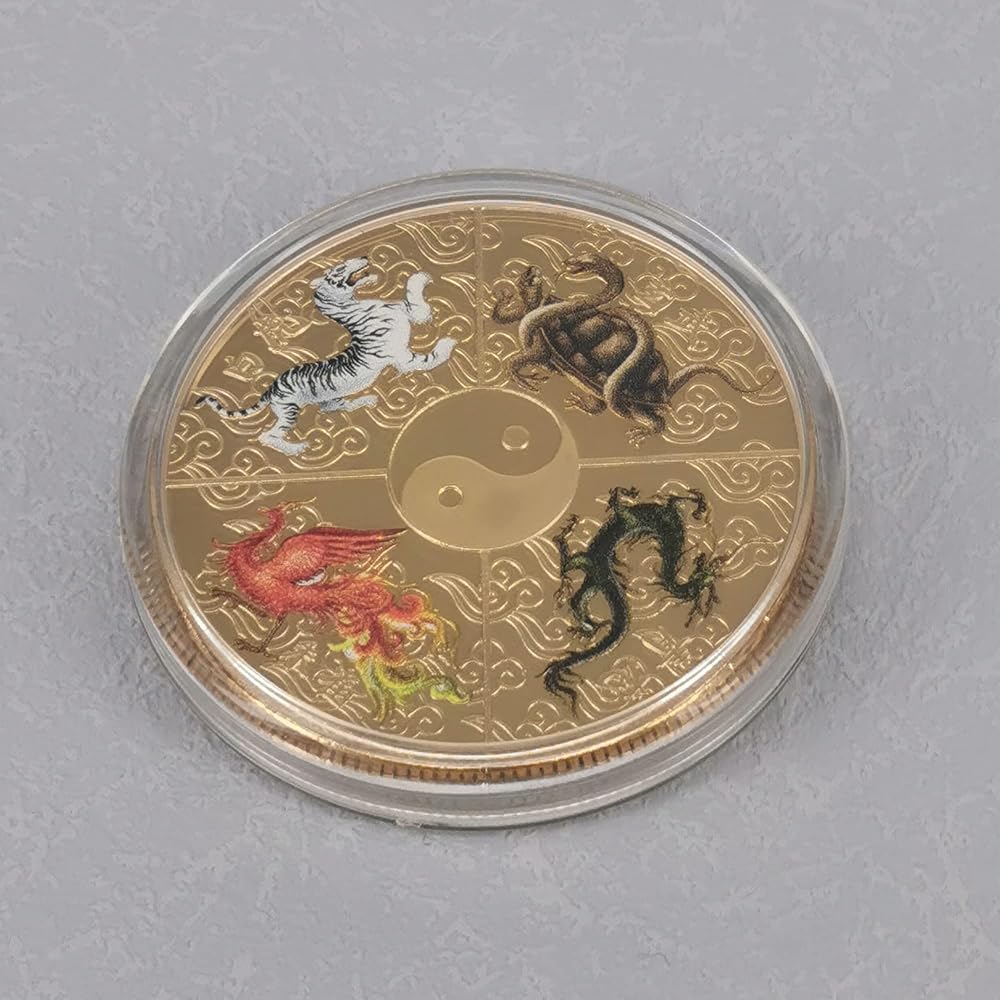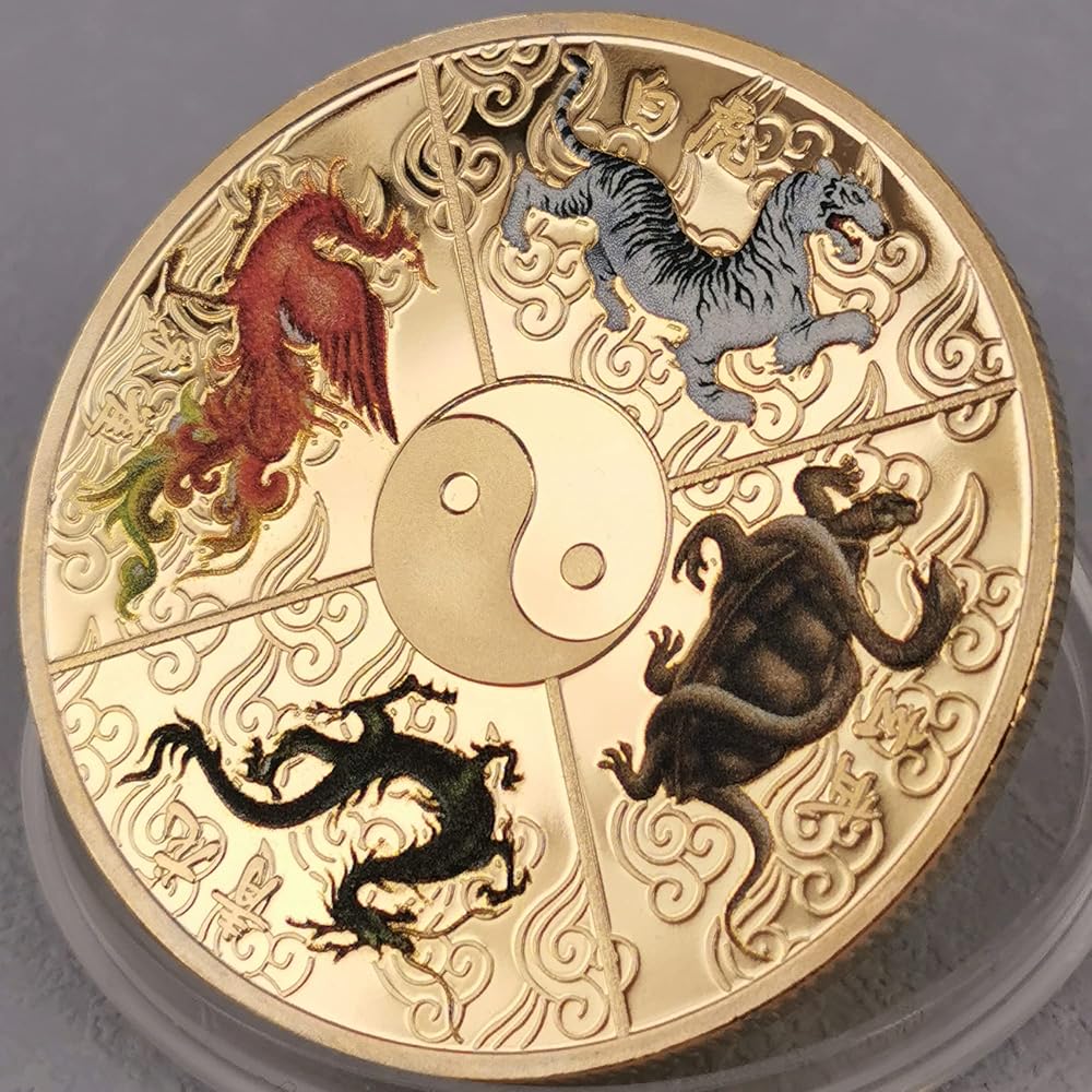 ➤The other side shows Tai Chi and Four Chinese Ancient Mythical Creatures: White Tiger, Blue Dragon, Black Tortoise, Rosefinc.