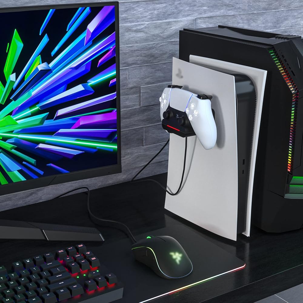 Wall Mount Charging Kits: Charging your ps5 controller on the wall or under the desk, space-saving, organizing your desk in neat, avoid the pets or kids to taking it ,keep your ps5 controller in safe.please note that it is not fits for dualsense edge version controller