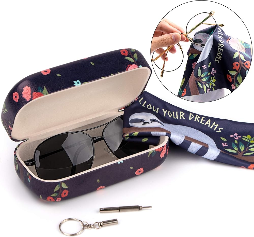 طراز أنيق لحافظة النظارات الشمسية للنساء والأطفال: جديد تمامًا بنسبة 100%! أنماط مختلفة لتختار. غطاء حماية صلب كبير جدًا لنظارات القراءة ومعظم أحجام النظارات الشمسية؛