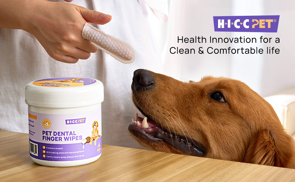 مناديل تنظيف أسنان الحيوانات الأليفة من إتش آي سي سي للكلاب والقطط، تزيل رائحة الفم الكريهة عن طريق إزالة البلاك وتراكم الجير بدون شطف فرشاة أسنان أصابع الكلب، للتنظيف اللطيف والعناية باللثة للحيوانات الأليفة، 100 قطعة